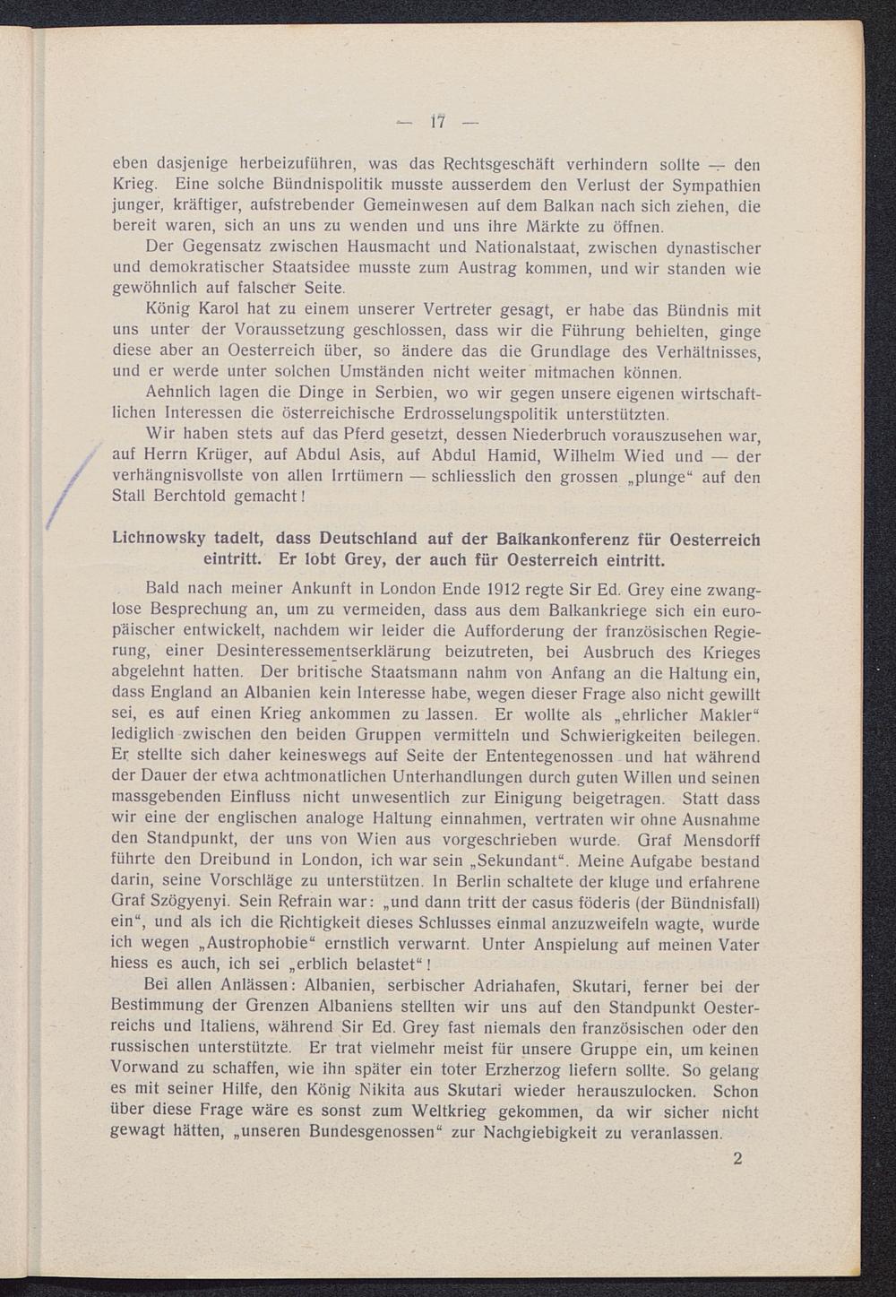 Die Denkschrift des Fürsten Lichnowsky : [der vollständige Wortlaut] ; meine Londoner Mission 1912 - 14, von Fürst Lichnowsky, ehemaliger deutscher Botschafter in London ; [zur Vorgeschichte des Krieges] / hrsg. von einer Gruppe von Friedensfreunden