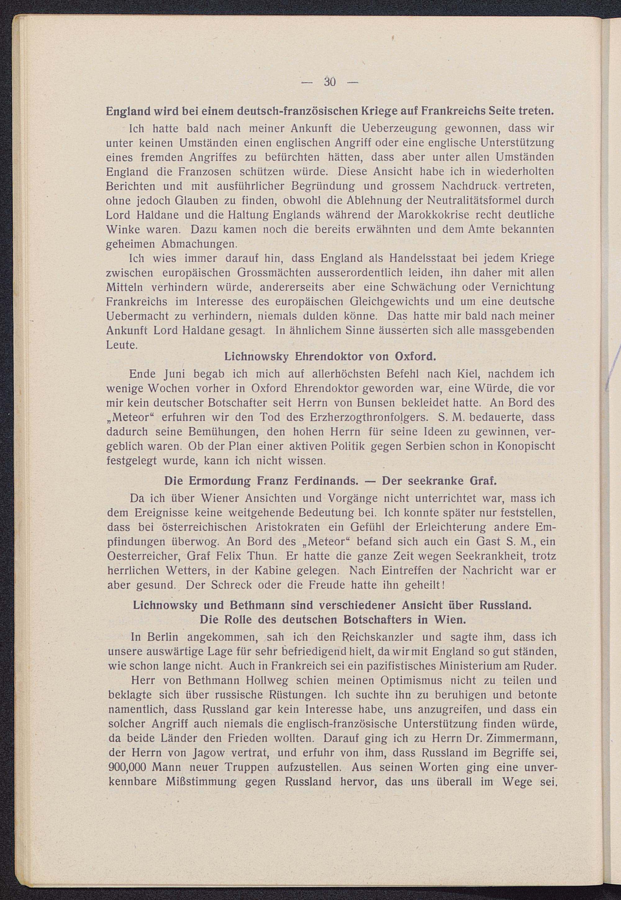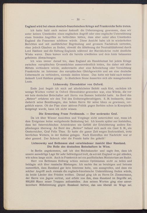 Die Denkschrift des Fürsten Lichnowsky : [der vollständige Wortlaut] ; meine Londoner Mission 1912 - 14, von Fürst Lichnowsky, ehemaliger deutscher Botschafter in London ; [zur Vorgeschichte des Krieges] / hrsg. von einer Gruppe von Friedensfreunden