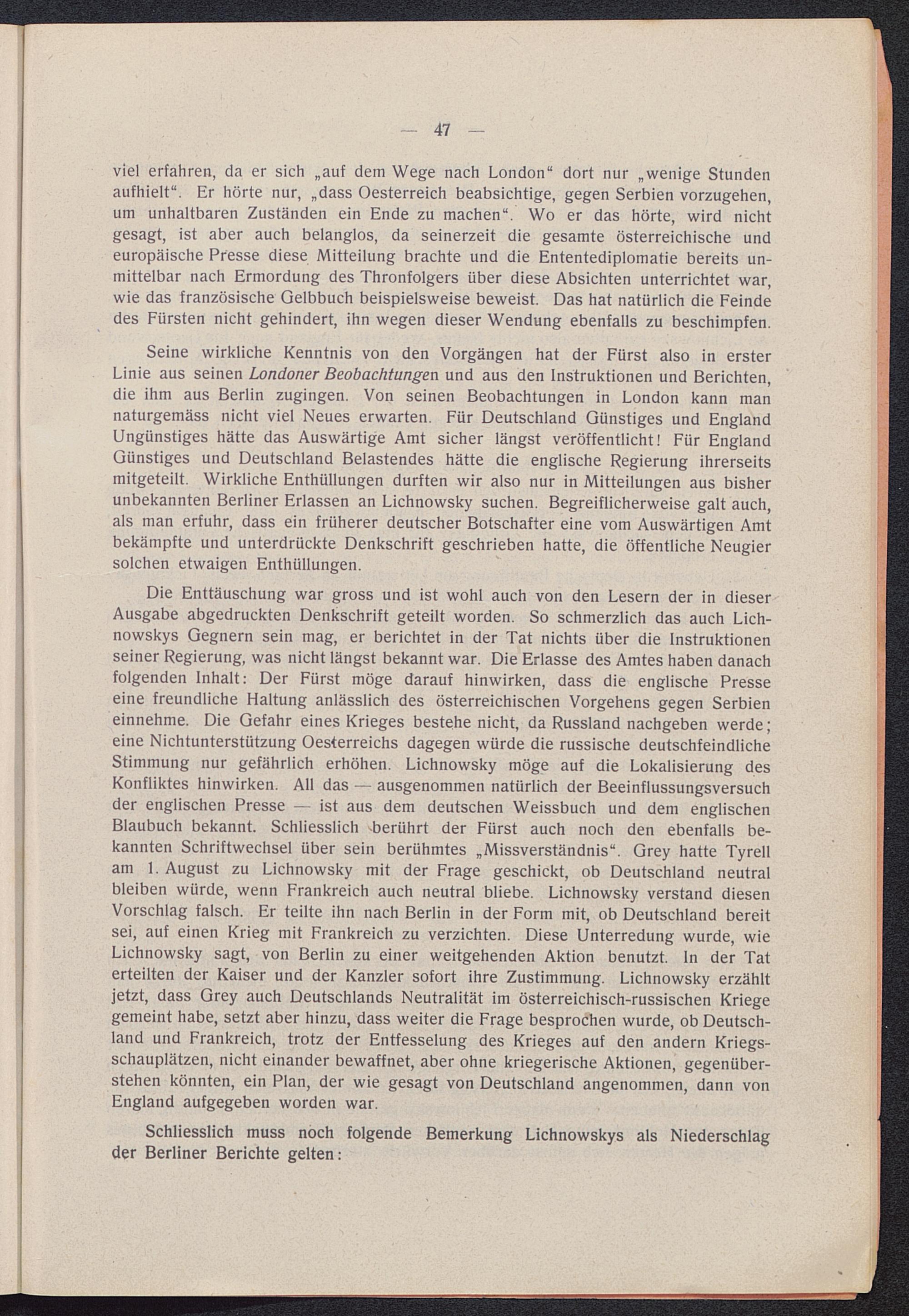 Die Denkschrift des Fürsten Lichnowsky : [der vollständige Wortlaut] ; meine Londoner Mission 1912 - 14, von Fürst Lichnowsky, ehemaliger deutscher Botschafter in London ; [zur Vorgeschichte des Krieges] / hrsg. von einer Gruppe von Friedensfreunden