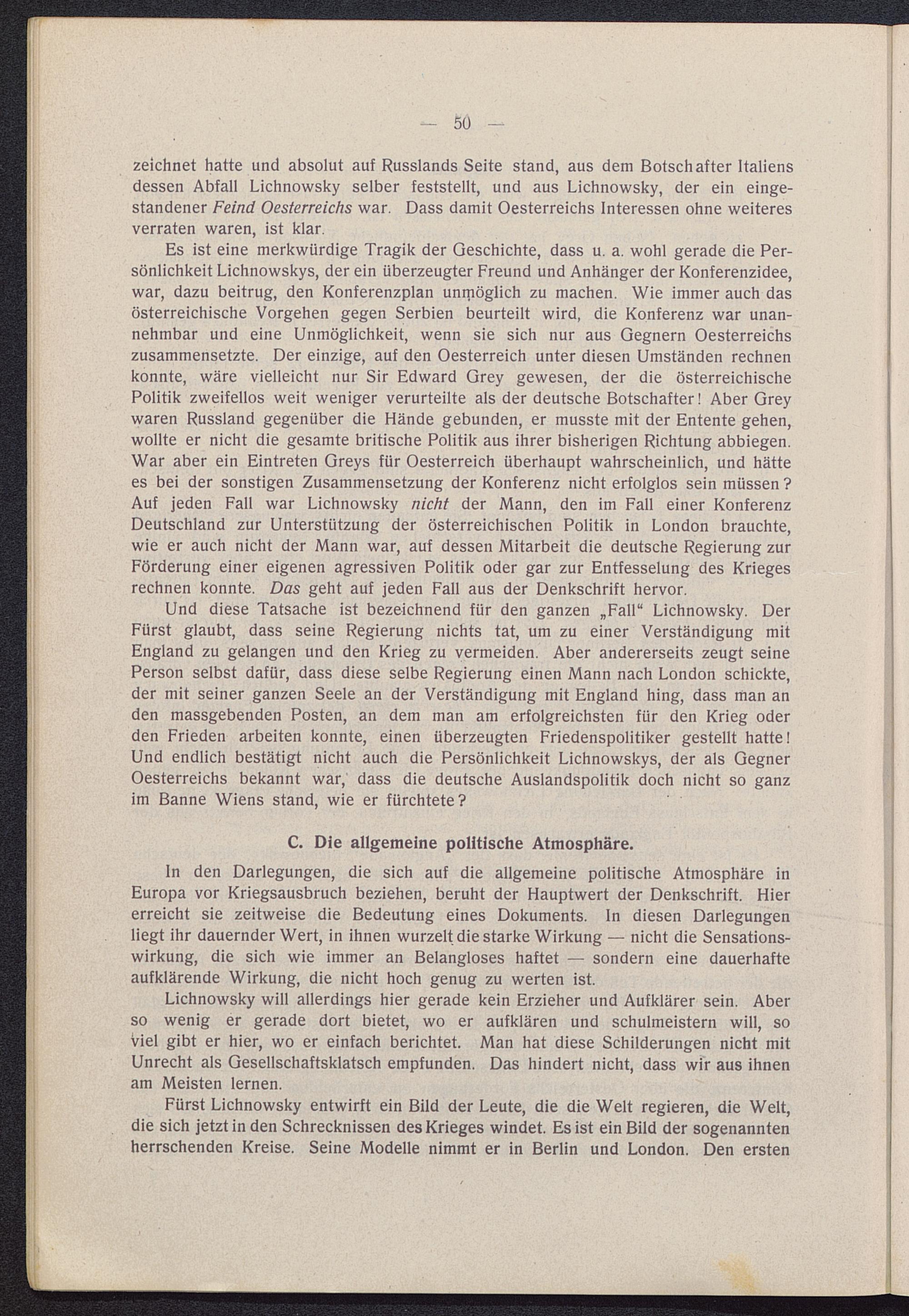 Die Denkschrift des Fürsten Lichnowsky : [der vollständige Wortlaut] ; meine Londoner Mission 1912 - 14, von Fürst Lichnowsky, ehemaliger deutscher Botschafter in London ; [zur Vorgeschichte des Krieges] / hrsg. von einer Gruppe von Friedensfreunden