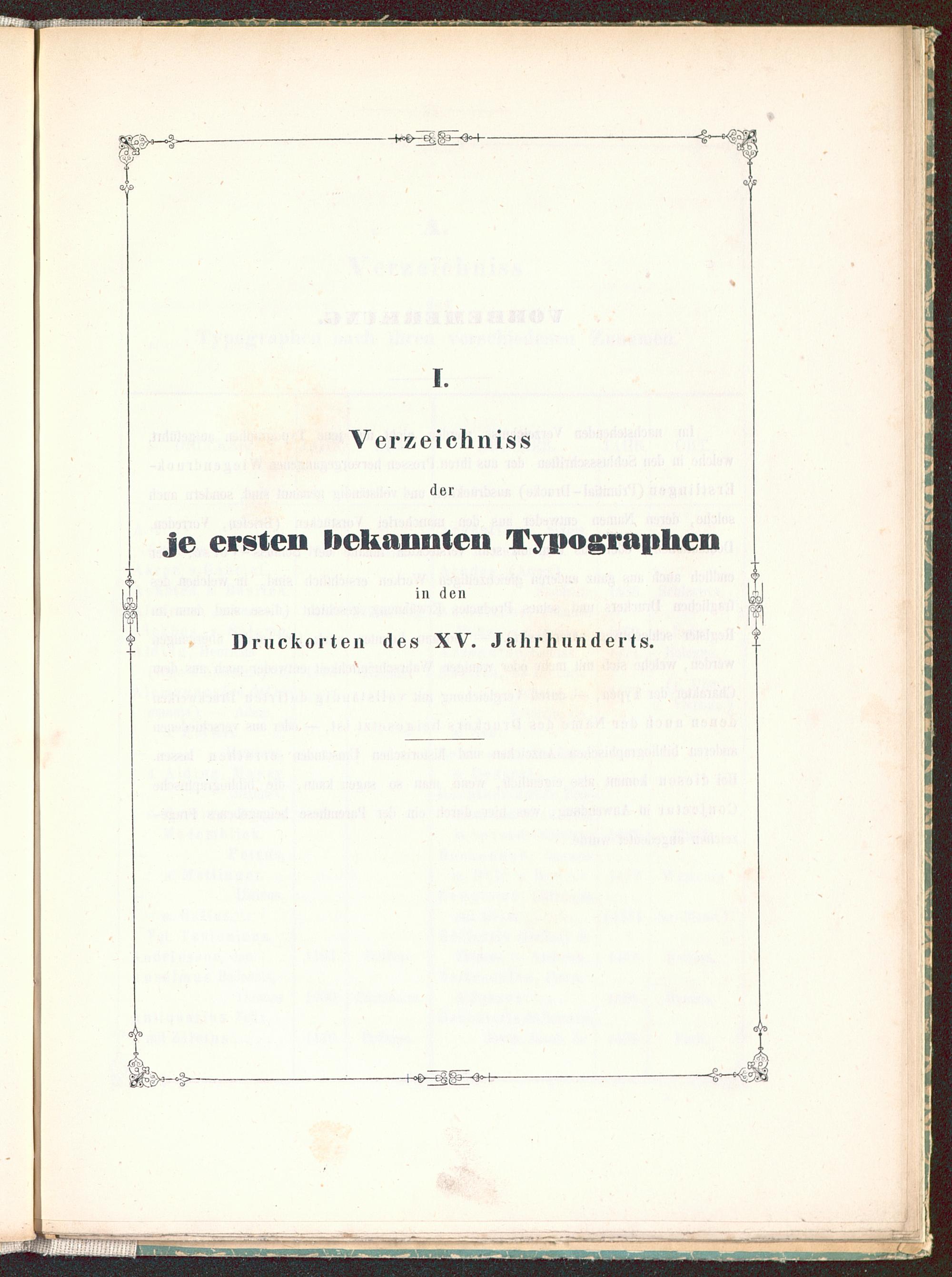 I. Verzeichnis der je ersten bekannten Typographen in den Druckorten des XV. Jahrhunderts