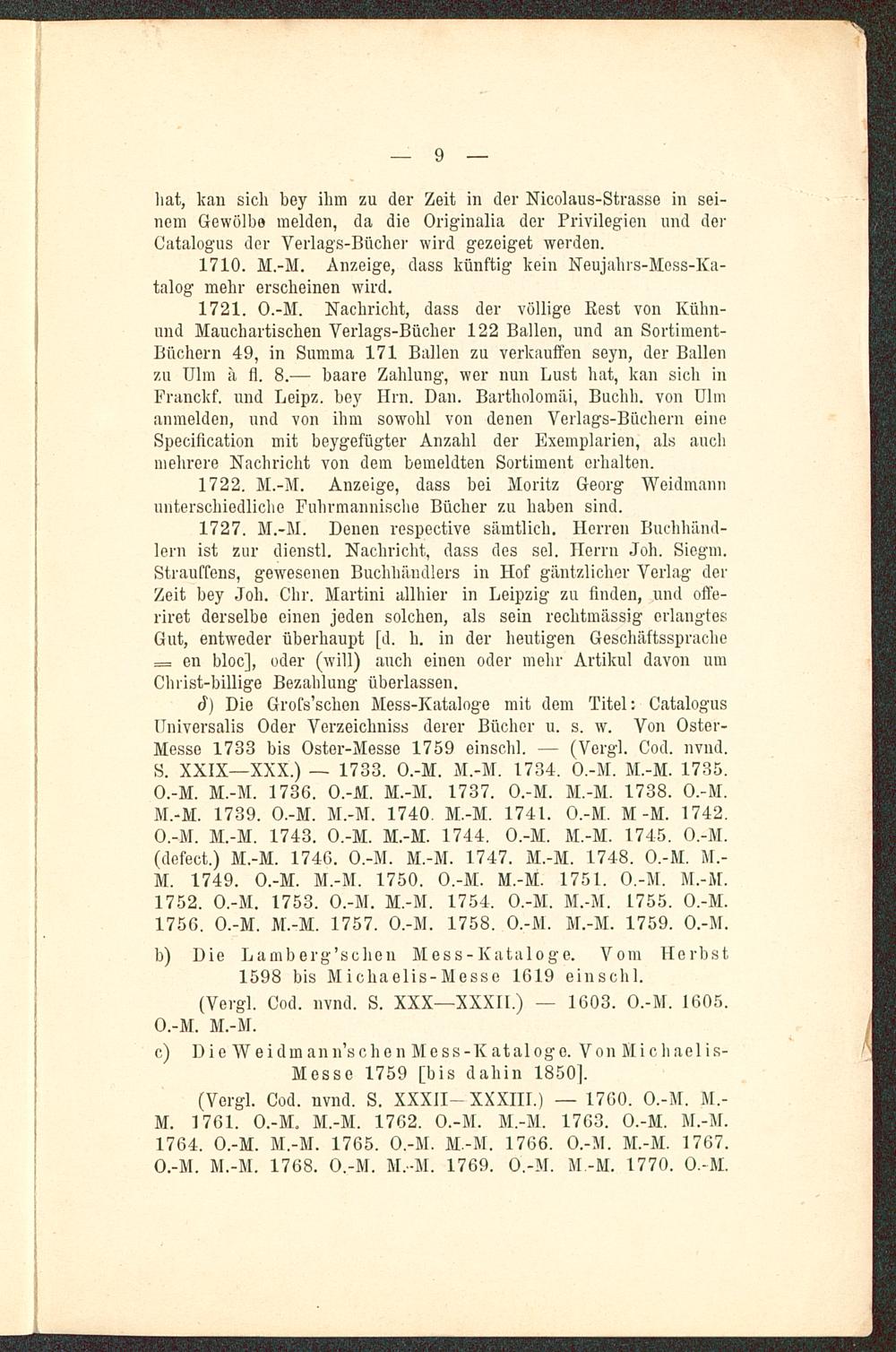 Die Meßkataloge des 16., 17. und 18. Jahrhunderts in den Bibliotheken zu Königsberg i. Pr.