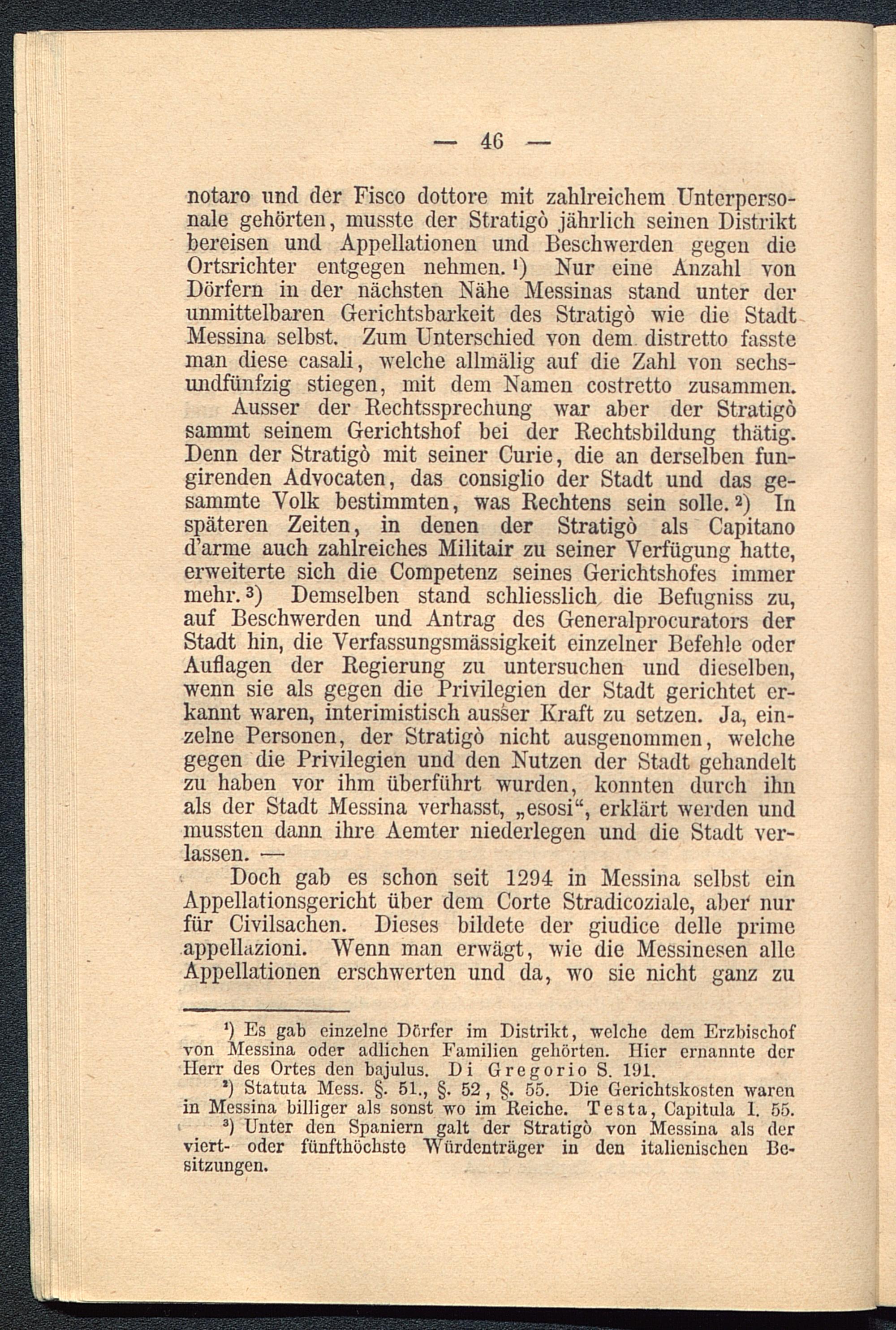 ’) Statuta Mess. §. 51., §. 52, §. 55. Die Gerichtskosten warenin Messina billiger als sonst wo im Reiche. Testa, Capitula 1. 55.