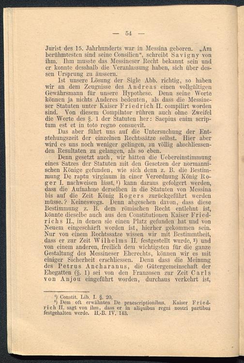 Ist unsere Lösung der Sigle Abb. richtig, so habenwir an dem Zeugnisse des Andreas einen vollgültigenGewährsmann für unsere Hypothese. Denn seine Wortekönnen ja nichts Anderes bedeuten, als dass die Messine-ser Statuten unter Kaiser Friedrich II. compilirt wordensind. Von diesem Coinpilator rühren auch ohne Zweifeldie Worte des §. 1 der Statuten her: Saepius enim scrip-tum est et in toto regno consucvit.