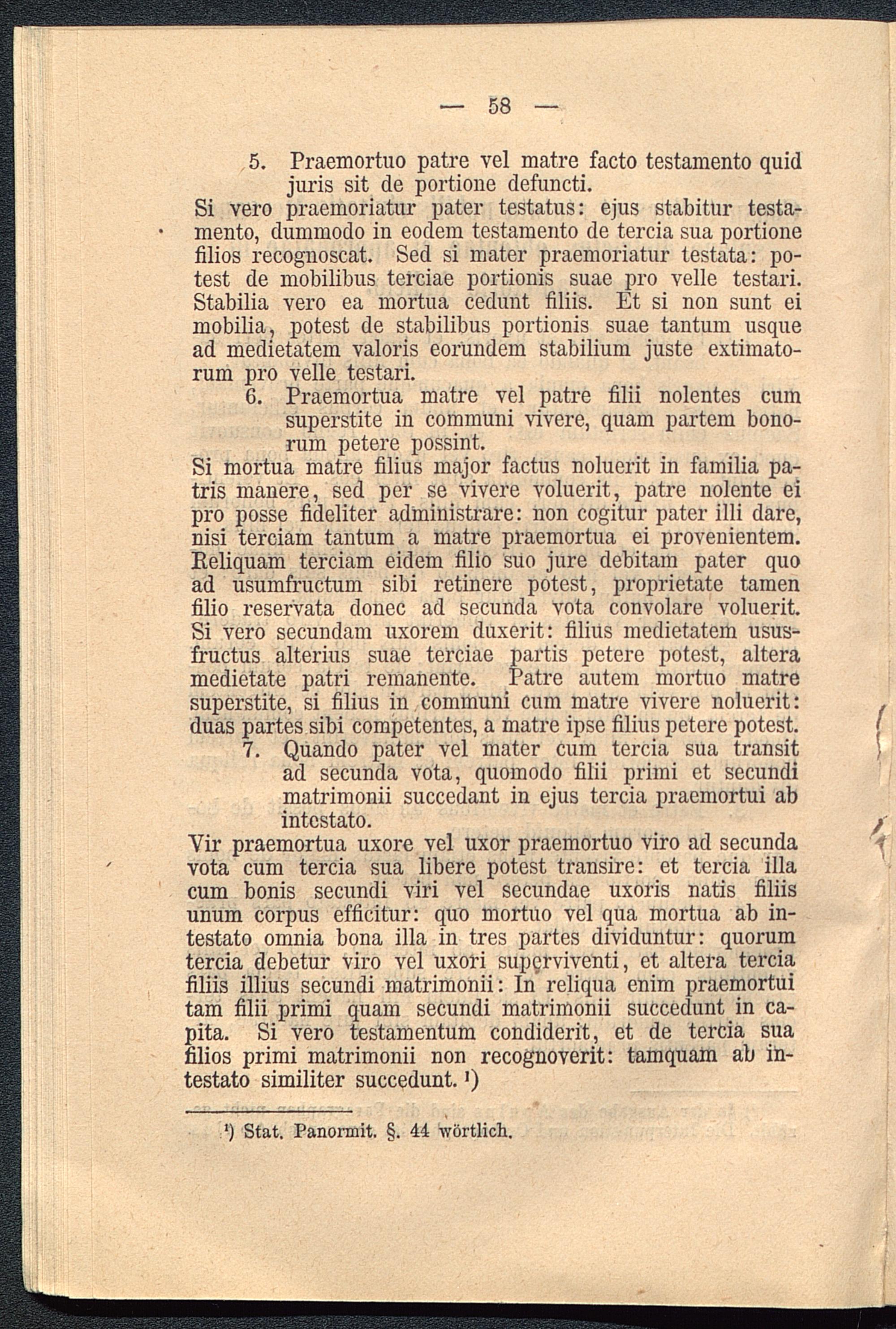 5. Praemortuo patre vel matre facto testamento quidjuris sit de portione defuncti.