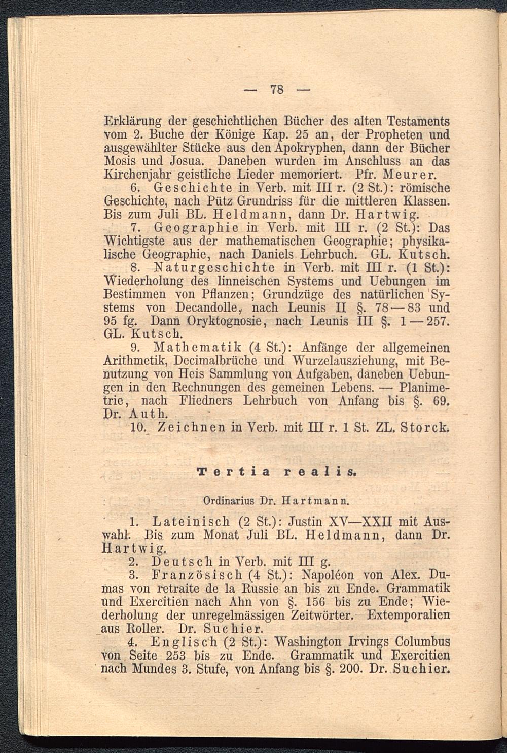 7. Geographie in Verb, mit HI r. (2 St.): DasWichtigste aus der mathematischen Geographie; physika-lische Geographie, nach Daniels Lehrbuch. GL. Kutsch.