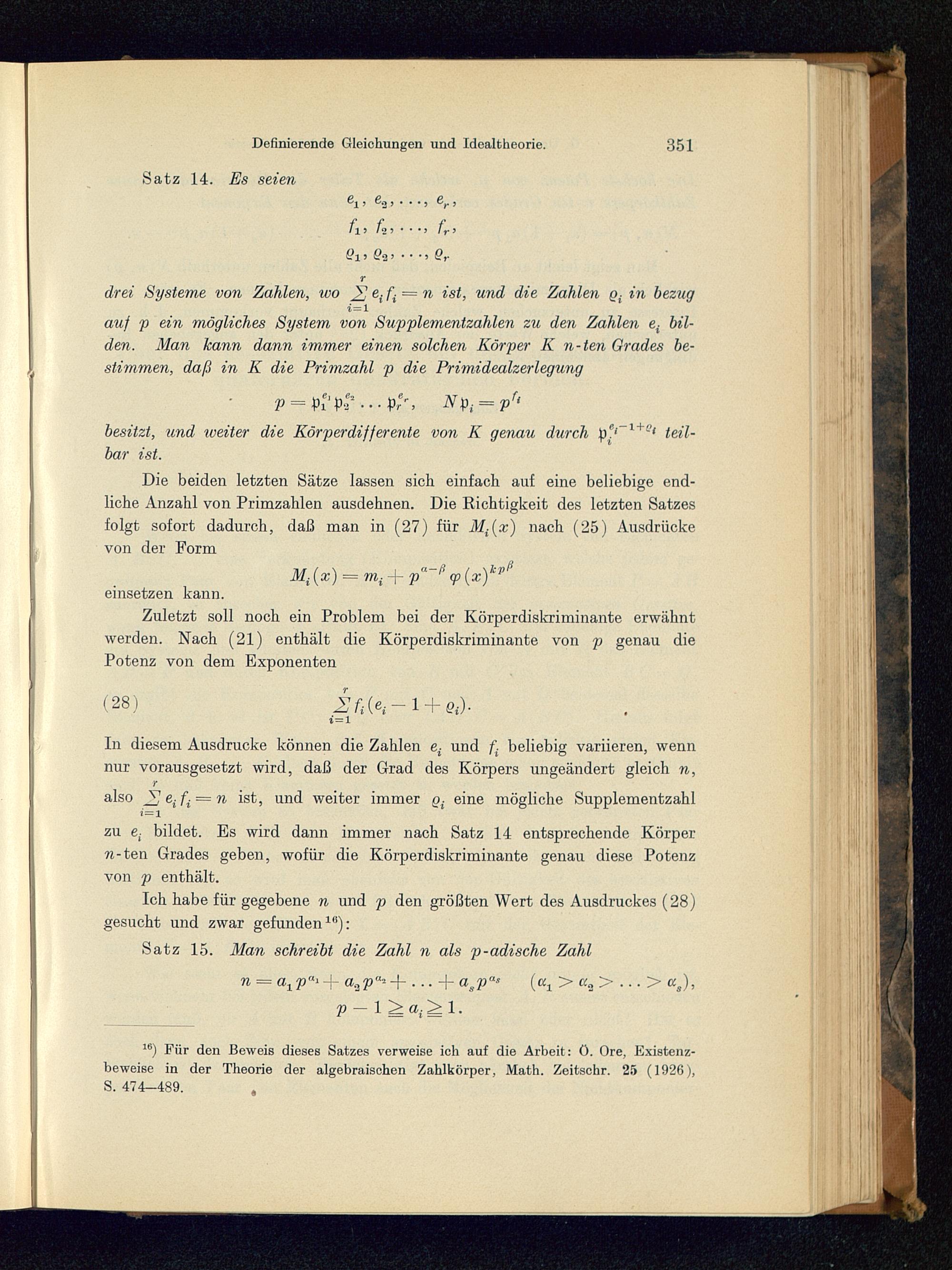 Über den Zusammenhang zwischen den definierenden Gleichungen und der Idealtheorie in algebraischen Körpern.