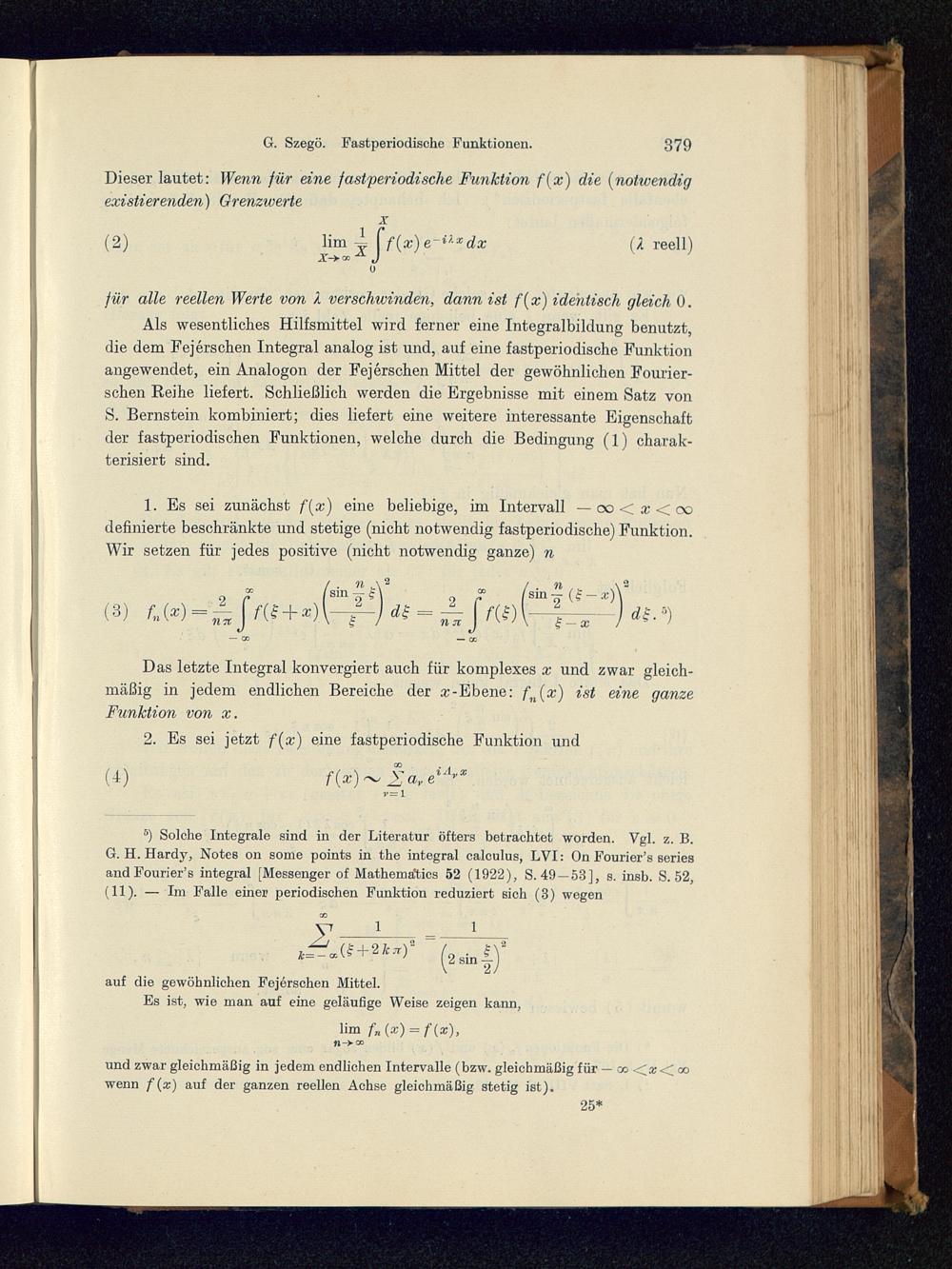 G. Szegö: Zur Theorie der fastperiodischen Funktionen