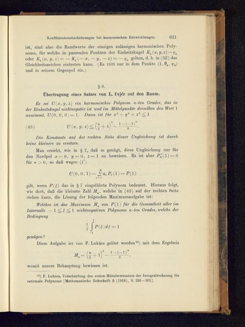 G. Szegö: Koeffizientenschätzungen bei ebenen und räumlichen harmonischen Entwicklungen