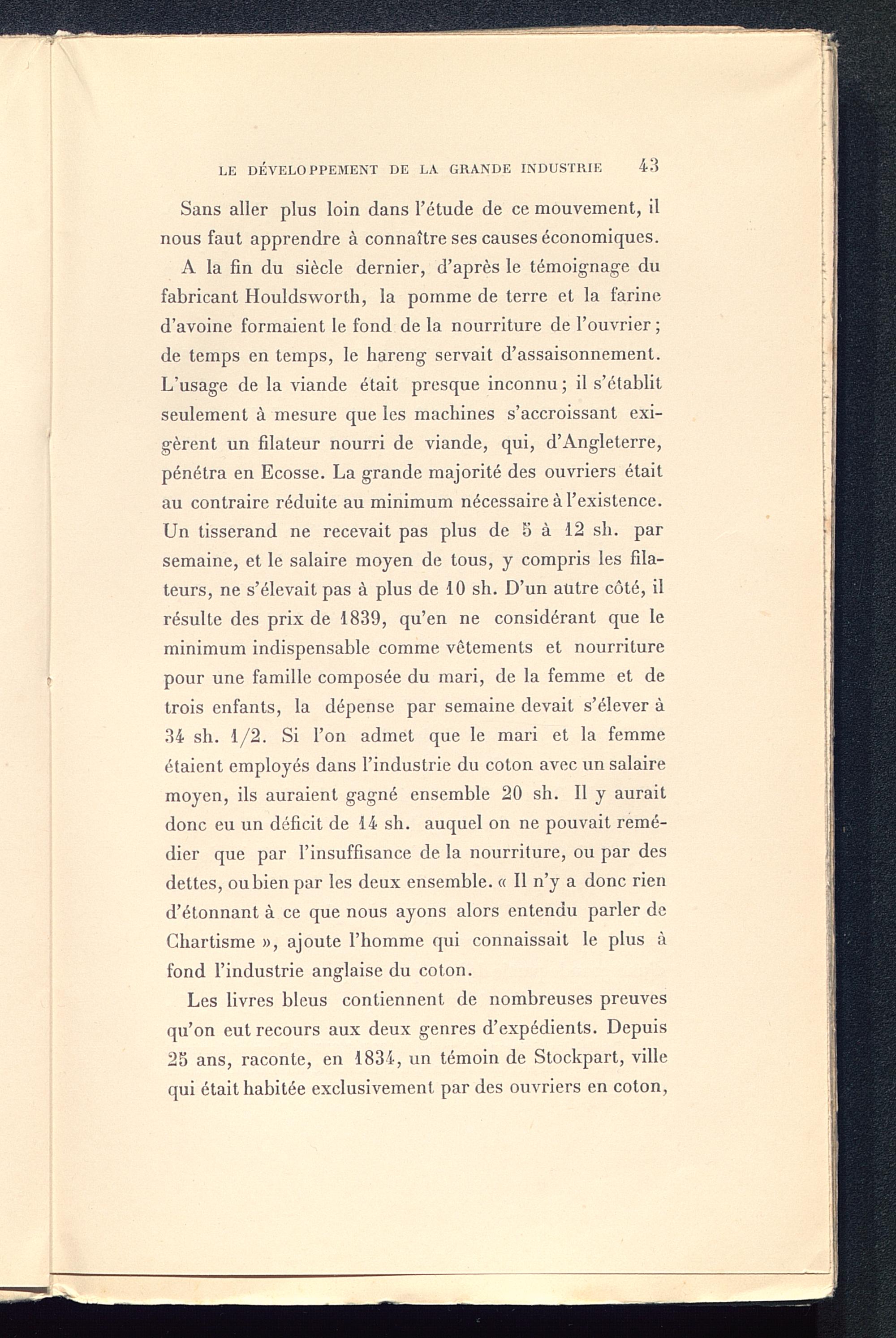 Les livres bleus contiennent de nombreuses preuvesqu’on eut recours aux deux genres d’expédients. Depuis25 ans, raconte, en 1834, un témoin de Stockpart, villequi était habitée exclusivement par des ouvriers en coton,