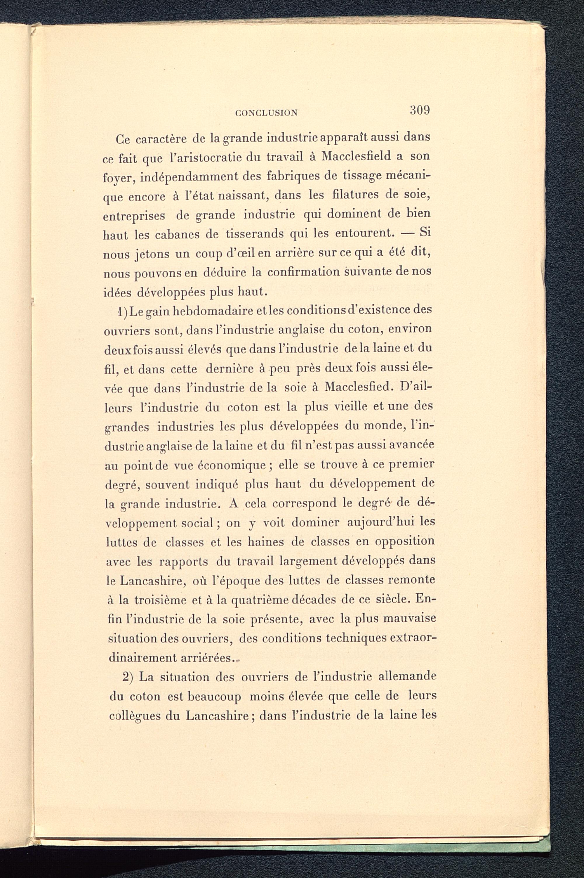2) La situation des ouvriers de l’industrie allemandedu coton est beaucoup moins élevée que celle de leurscollègues du Lancashire ; dans l’industrie de la laine les