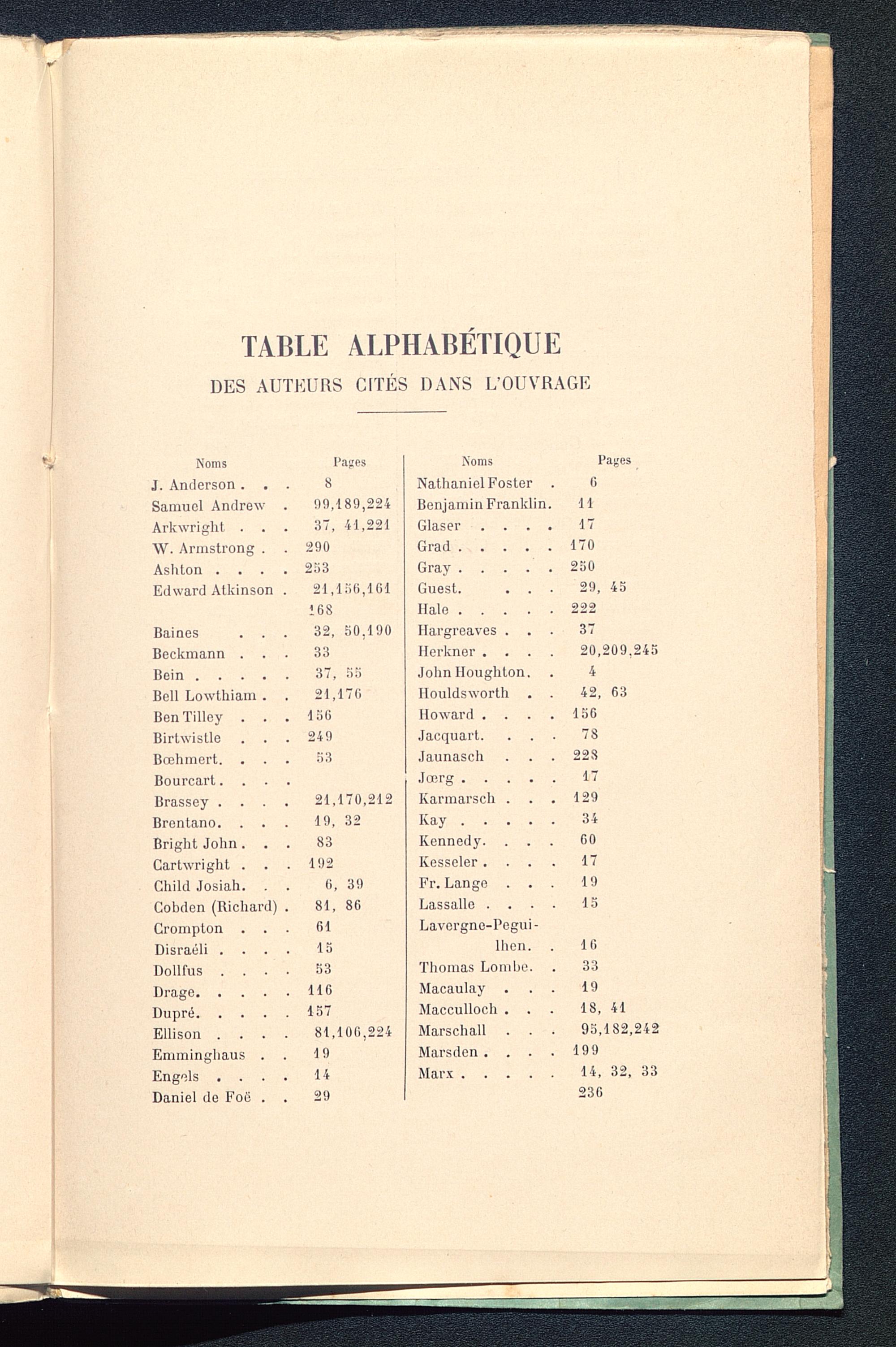 TABLE ALPHABÉTIQUE
