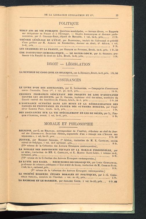 LA LUTTE DES RACES. - RECIII RCIIES SOCIOLOGIQUES, par Louis Gumpi.OWICZ,piofcsseur de sciences politiques à ('Université de Giatz, traduction de M. Charles Bave.1 vol. in-s, cartonné,prix... 9 fr.