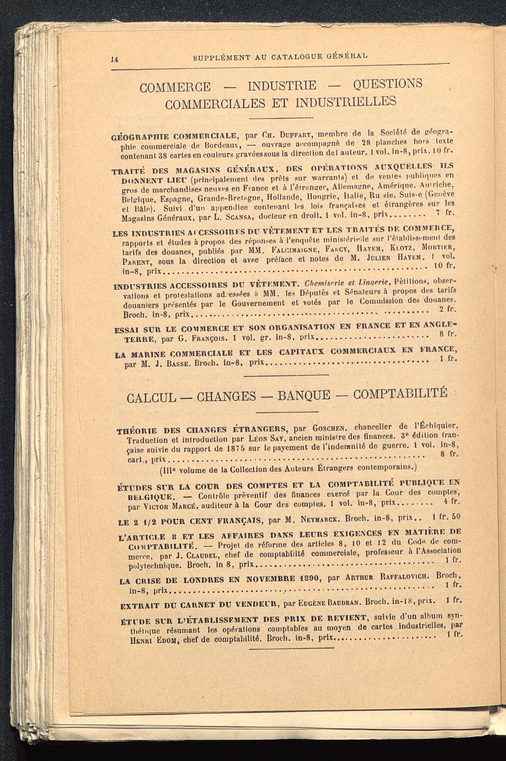 LES INDUSTRIES Al CESSOIRFS DU VÊTEMENT ET LES TRAITÉS DE COMMERCE,rapports et études à propos des réponses à l’enquête ministérielle sur l'établissement destarifs des douanes, publiés par MM. Falgimaigne, Fa«cy, Havem, Ki.otz, Mohtier,Parent, sous la direction et avec prélace et notes de M. Julien Hayem. I vol.in-8, prix. 10 fr.