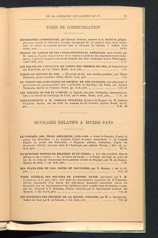 LES DROITS DE L'ÉTAT SI R LES TARIFS DES CHEMINS DE FER, en Angleterre etaux Étals-Unis, par Ch. Gomel. Broch. in-8, prix . 1 fr.