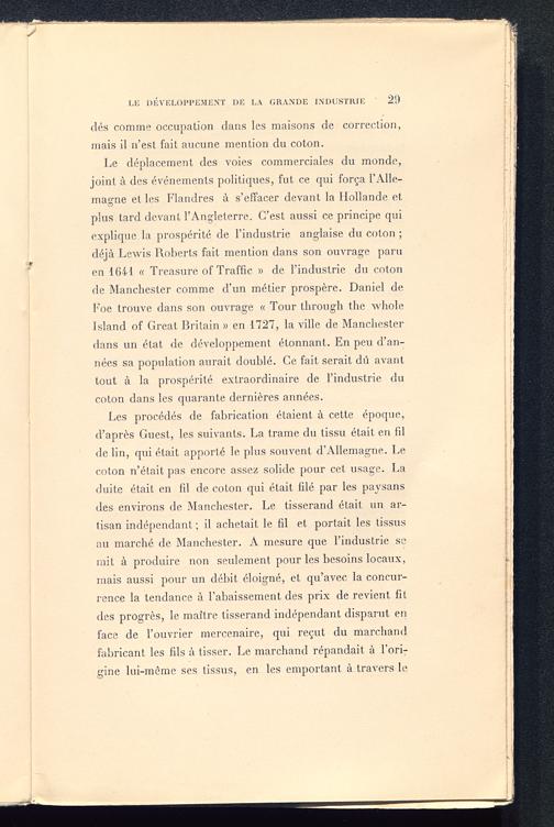 Chapitre Ier. Le développement de la grande industrie du coton en Angleterre