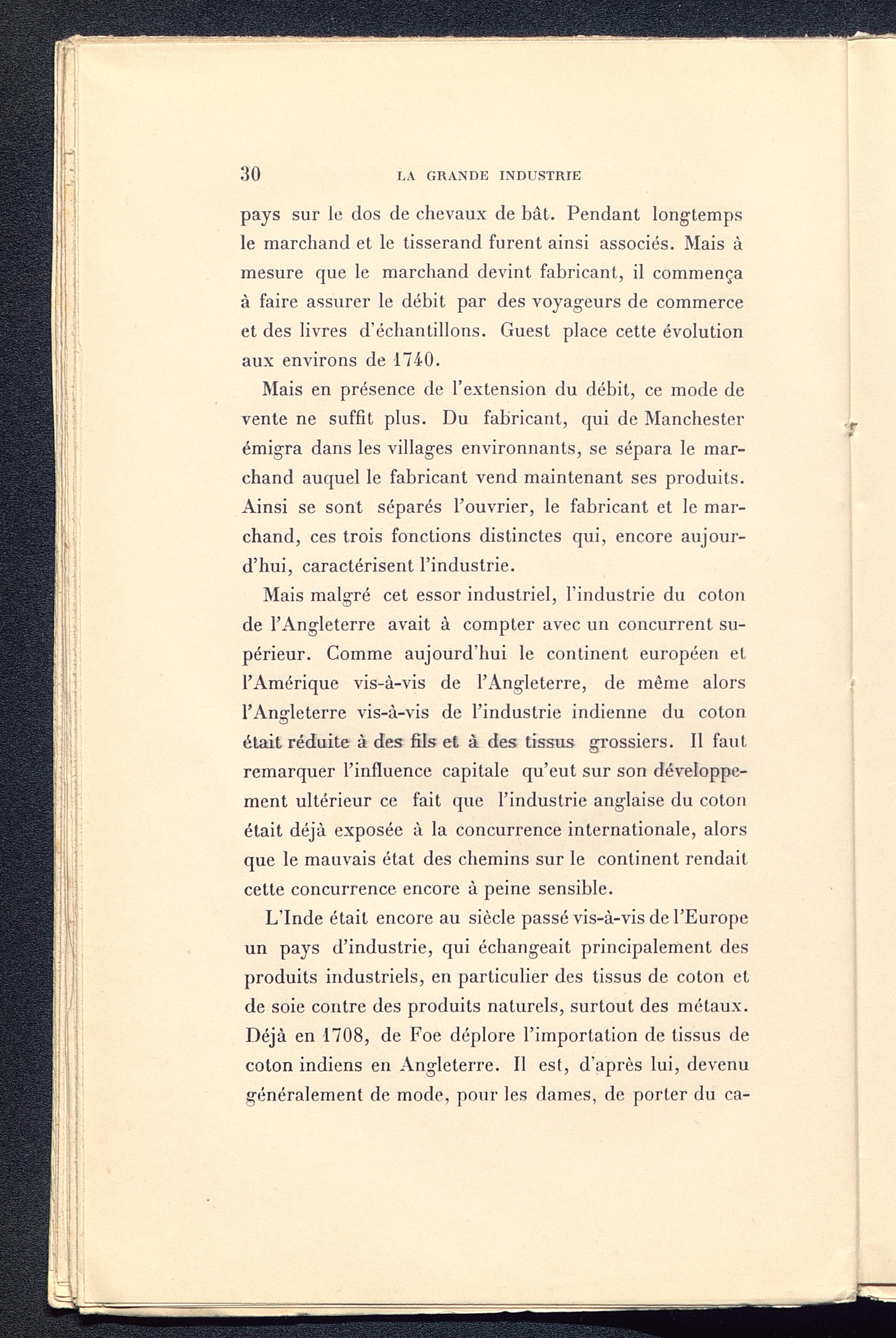 Chapitre Ier. Le développement de la grande industrie du coton en Angleterre