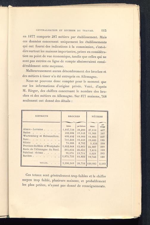 Chapitre II. État actuel de l'industrie Anglaise du coton comparée avec etat dans la troisième décede et avec l'etat présent de l'industrie Allemande du cuton