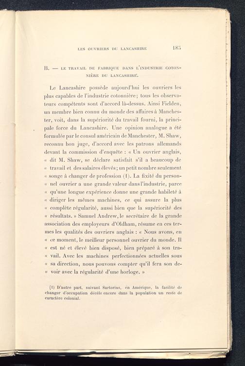 Chapitre II. État actuel de l'industrie Anglaise du coton comparée avec etat dans la troisième décede et avec l'etat présent de l'industrie Allemande du cuton
