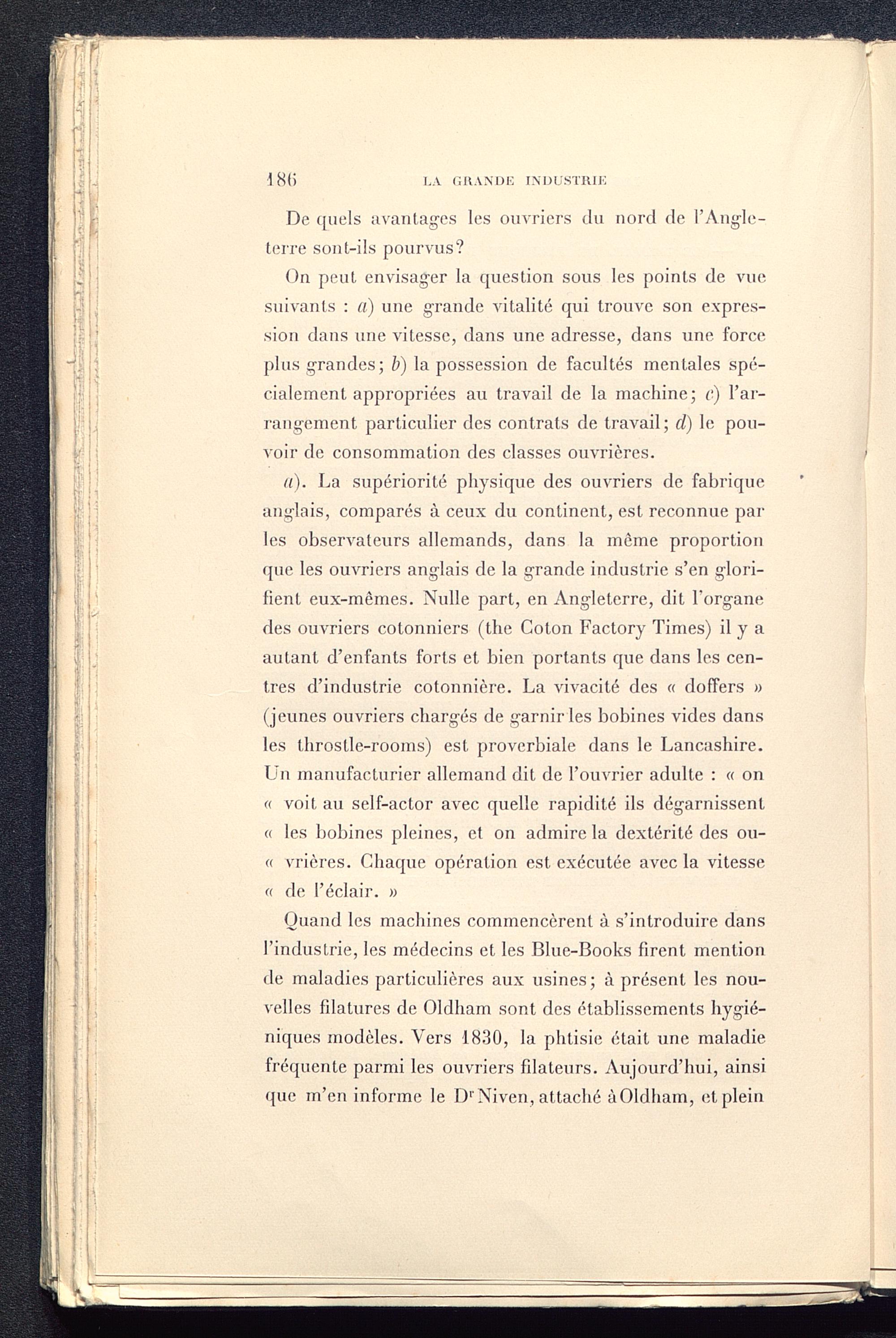 Chapitre Ier. Le développement de la grande industrie du coton en Angleterre