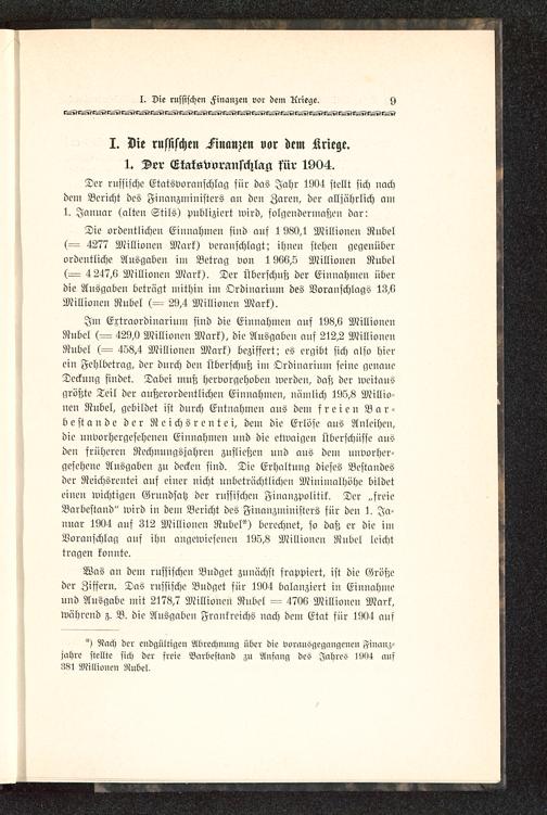 I. Die russischen Finanzen vor dem Kriege.1. Der Etaksvoranschlag für 1904.