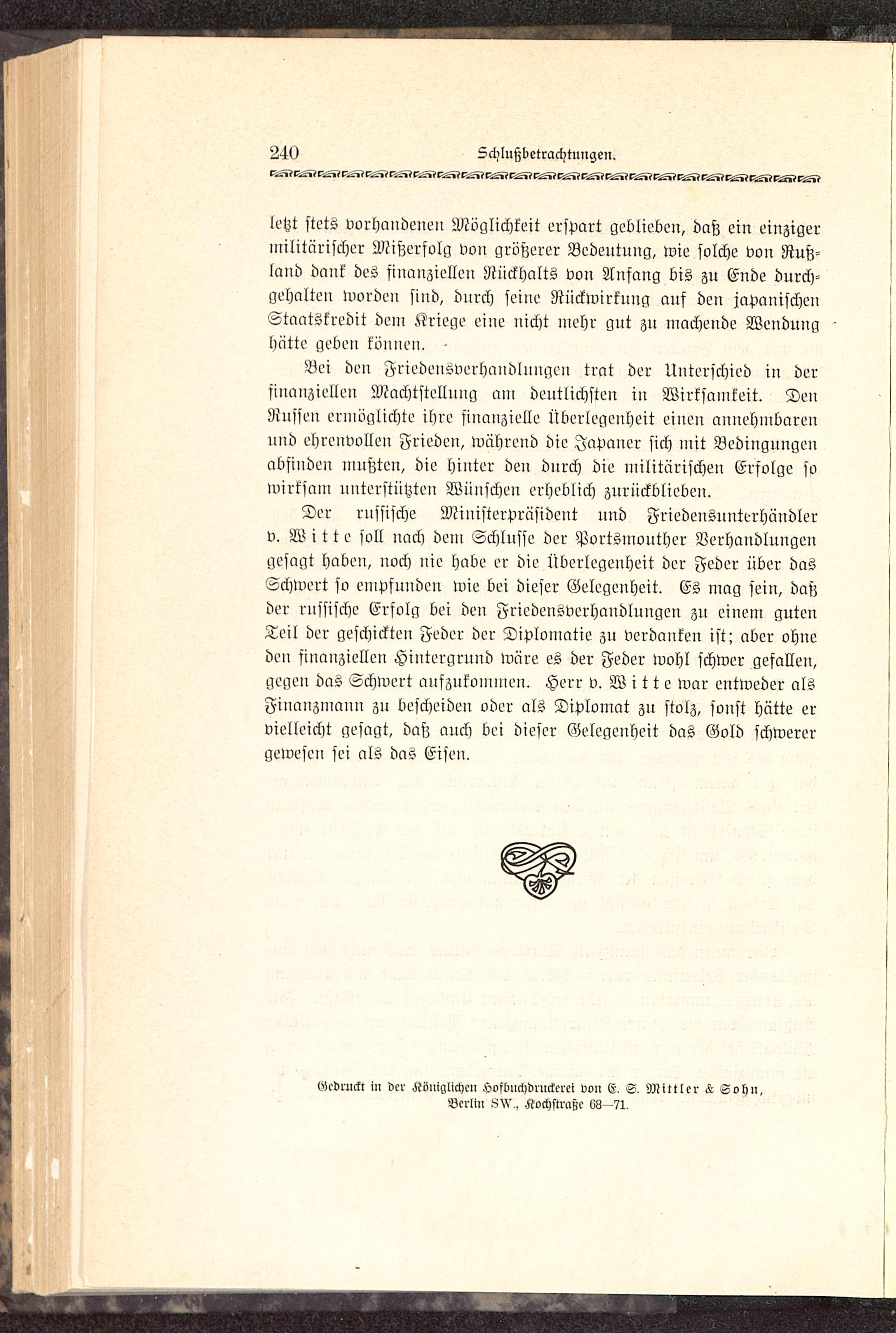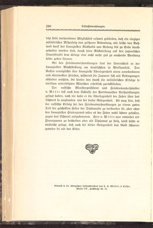 Bei den Friedensverhandlungen trat der Unterschied in derfinanzielle» Machtstellung am deutlichsten in Wirksamkeit. DenRussen ermöglichte ihre finanzielle Überlegenheit einen annehmbarennnd ehrenvollen Frieden, während die Japaner sich mit Bedingungennbsinden mußten, die hinter den durch die militärische» Erfolge sowirksam unterstützten Wünschen erheblich zurückbliebeu.