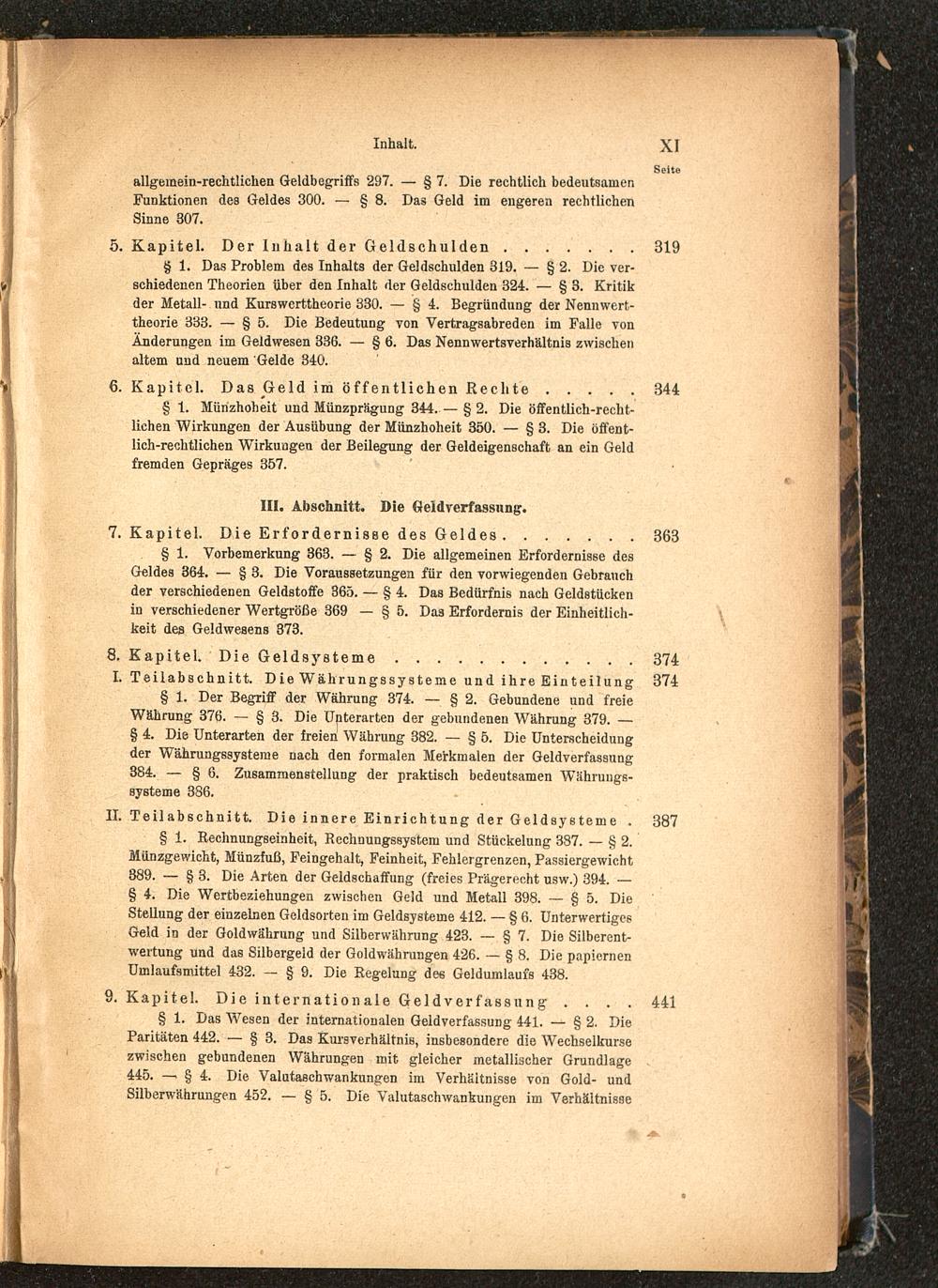 allgemein-rechtlichen Geldbegriffs 297. — § 7. Die rechtlich bedeutsamenFunktionen des Geldes 300. — § 8. Das Geld im engeren rechtlichenSinne 307.