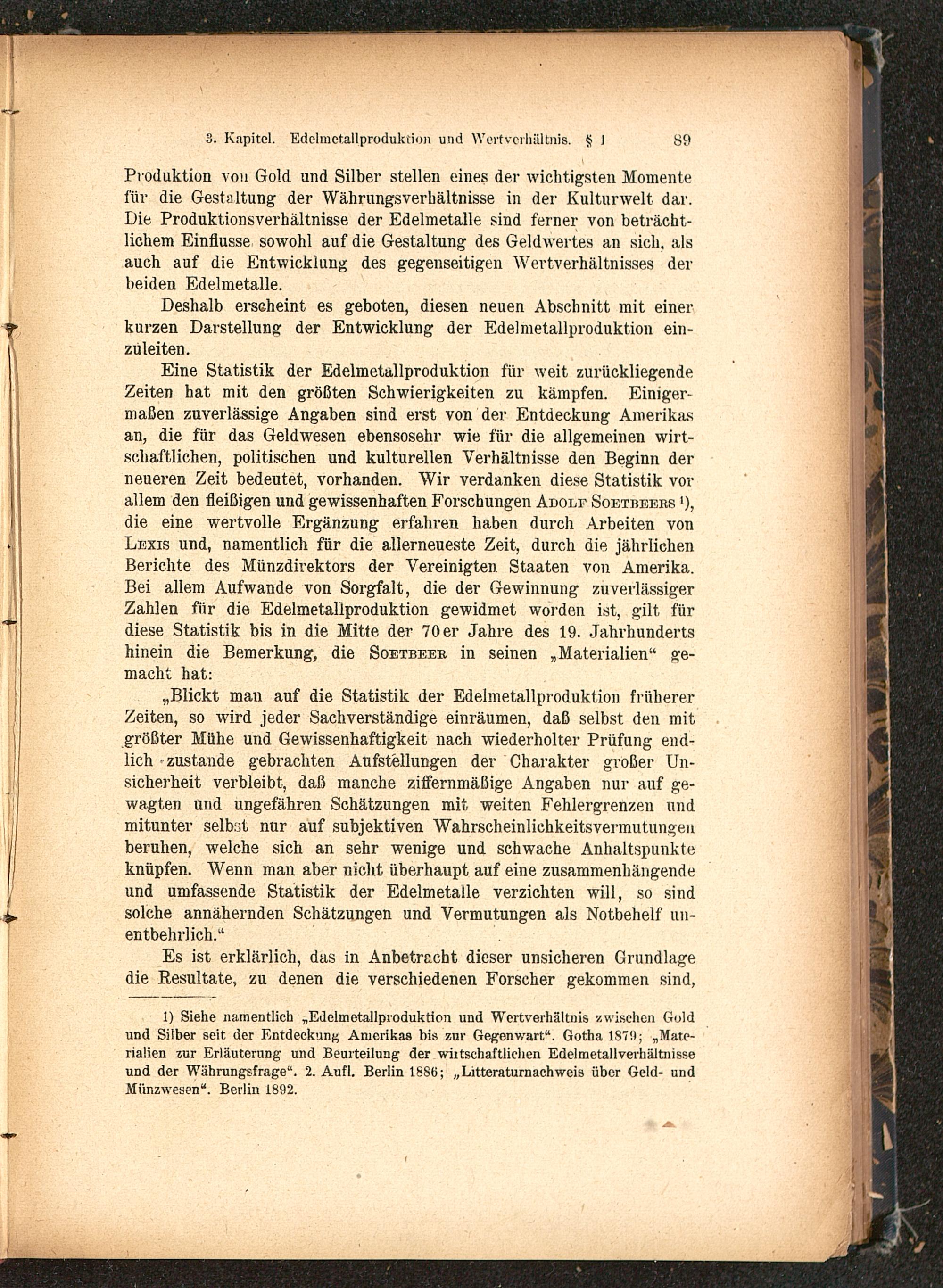 1) Siehe namentlich „Edelrnetallpioduktion und Wertverhältnis zwischen Goldund Silber seit der Entdeckung Amerikas bis zur Gegenwart". Gotha 1879; „Mate-rialien im Erläuterung und Beurteilung der wiitschaftlichen Edelmetallverhältnisseund der Währungsfrage''. 2. Aufl. Berlin 18S6; „Literaturnachweis über Geld- undMünzwesen". Berlin 1892.