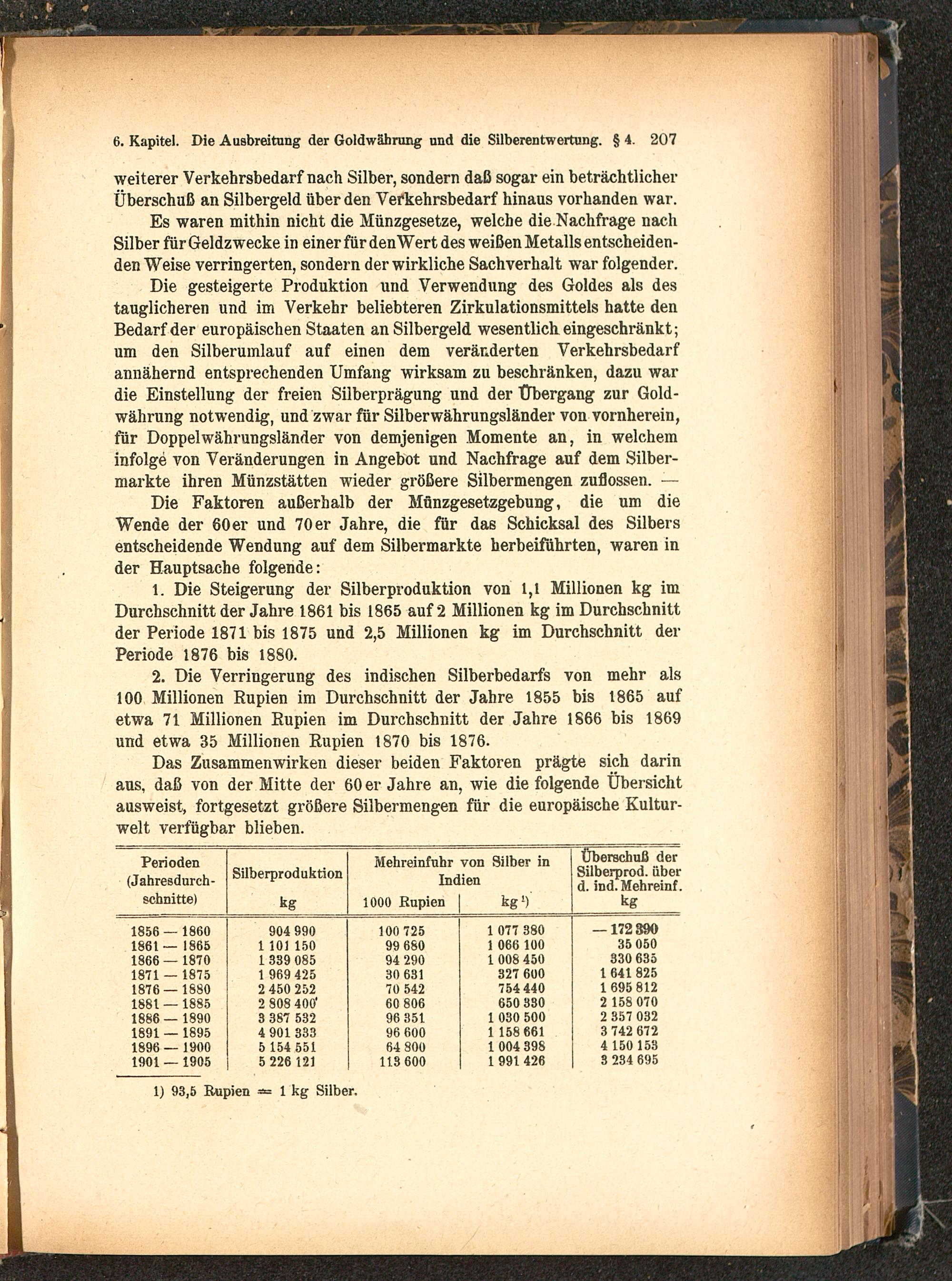 6. Kapitel. Die Ausbreitung der Goldwährung und die Silberentwertung. § 4. 207