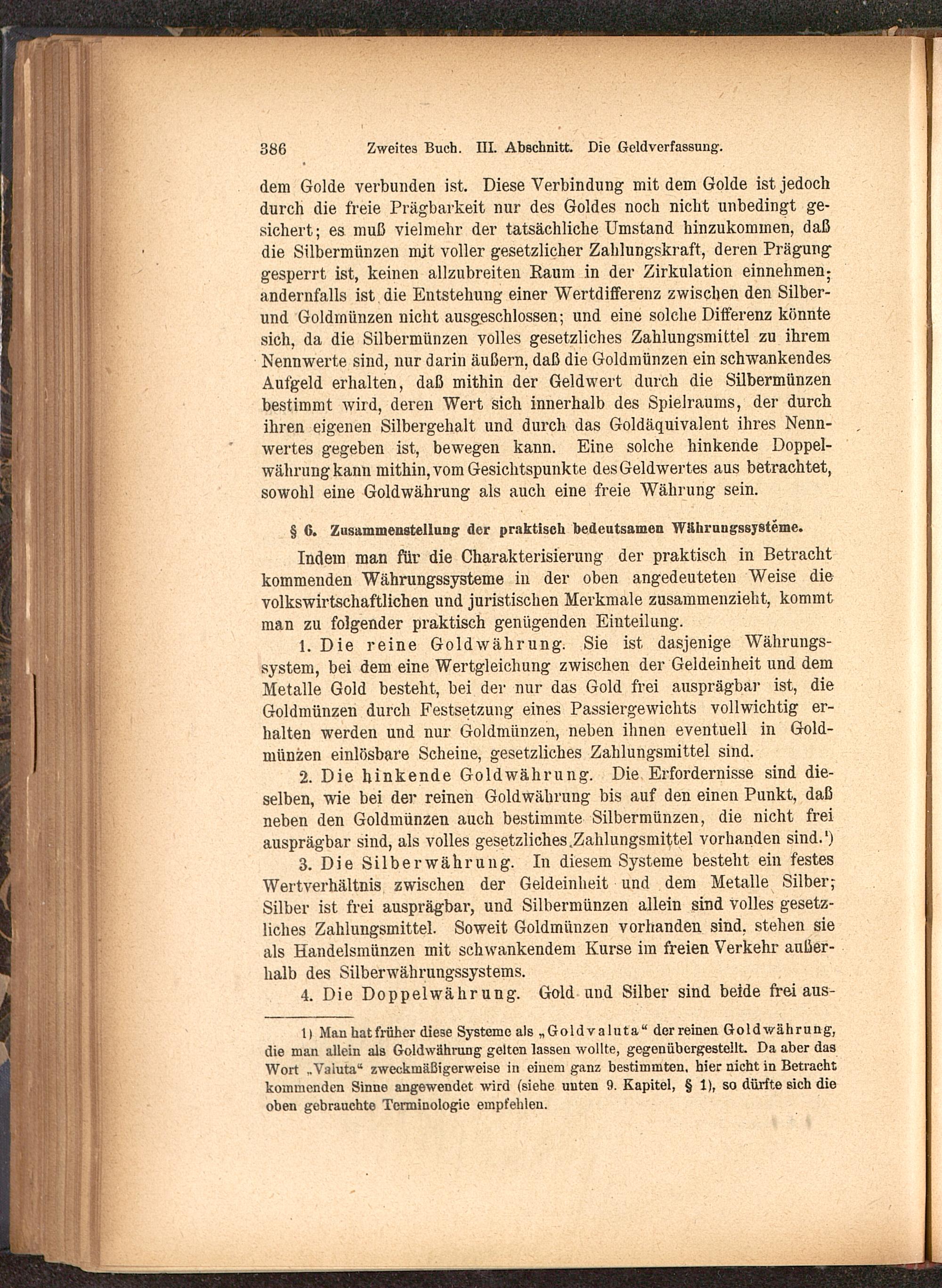 Indem man für die Charakterisierung der praktisch in Betrachtkommenden Währungssysteme in der oben angedeuteten Weise dievolkswirtschaftlichen und juristischen Merkmale zusammenzieht, kommtman zu folgender praktisch genügenden Einteilung.