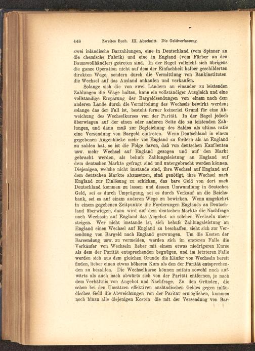 zwei inländische Barzahlungen, eine in Deutschland (vom Spinner andie chemische Fabrik) und eine in England (vom Färber an denBaumwollhändler) getreten sind. In der Begel vollzieht sich übrigensdie ganze Operation nicht auf dem der Einfachheit halber geschildertendirekten Wege, sondern durch die Vermittlung von Bankinstitutendie Wechsel auf das Ausland ankaufen und verkaufen.