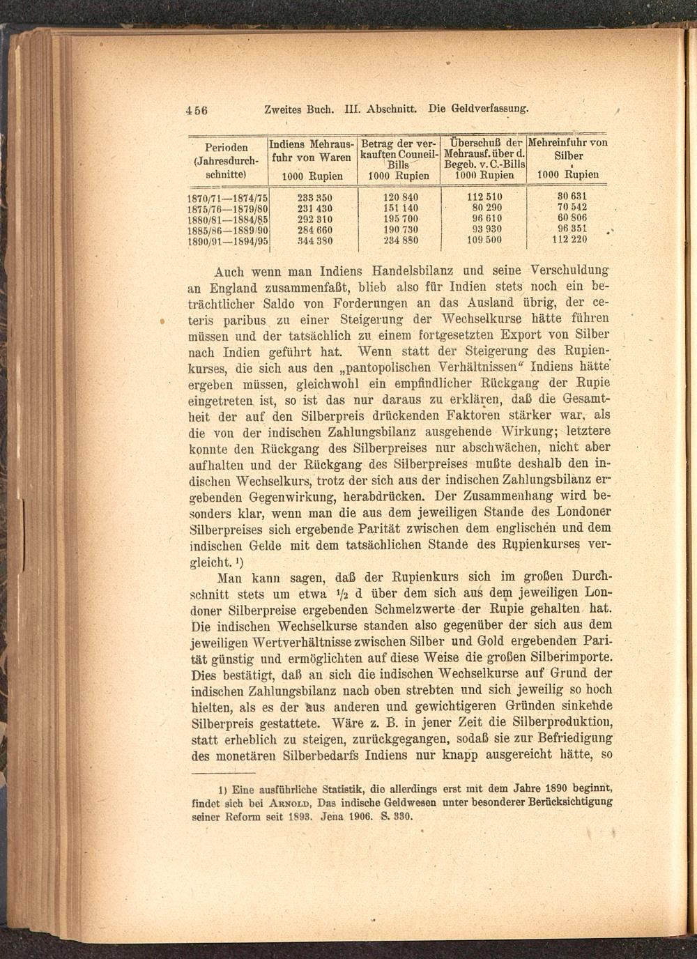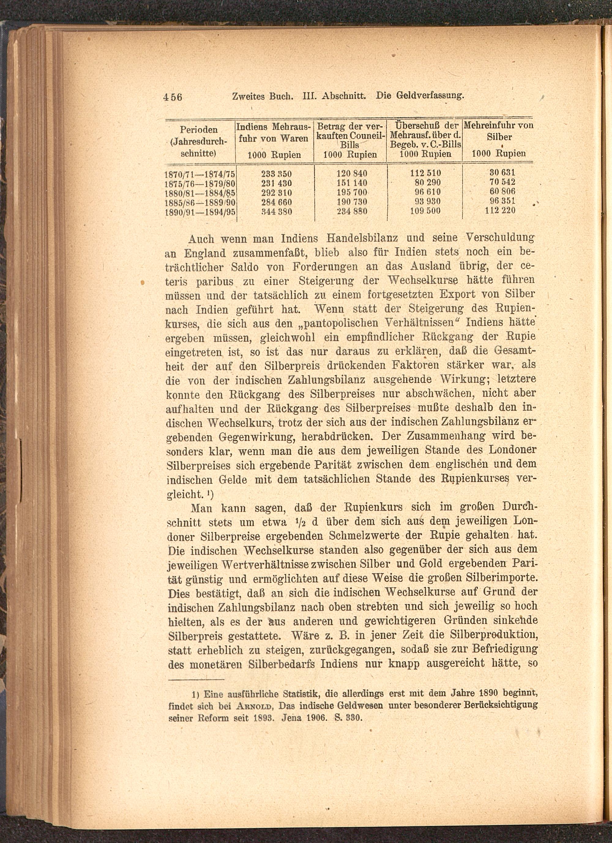 1) Eine ausführliche Statistik, die allerdings erst mit dem Jahre 1890 beginnt,findet sich bei Arnold, Das indische Geldwesen unter besonderer Berücksichtigungseiner Reform seit 1893. Jena 1906. S. 330.