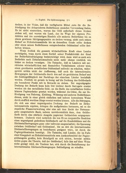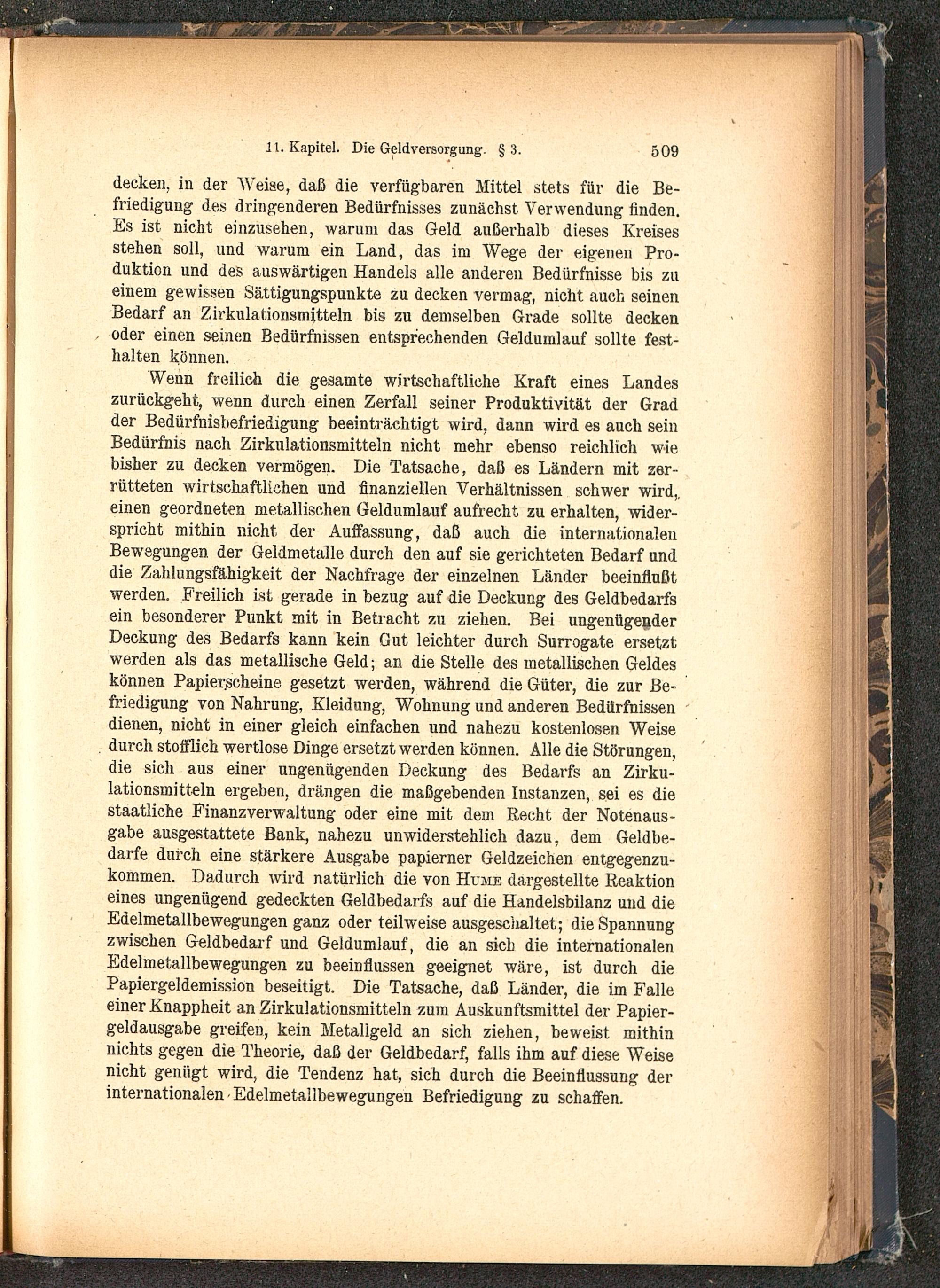 decken, in der "Weise, daß die verfügbaren Mittel stets für die Be-friedigung des dringenderen Bedürfnisses zunächst Verwendung finden.Es ist nicht einzusehen, warum das Geld außerhalb dieses Kreisesstehen soll, und warum ein Land, das im Wege der eigenen Pro-duktion und des auswärtigen Handels alle anderen Bedürfnisse bis zueinem gewissen Sättigungspunkte zu decken vermag, nicht auch seinenBedarf an Zirkulationsmitteln bis zu demselben Grade sollte, deckenoder einen seinen Bedürfnissen entsprechenden Geldumlauf sollte fest-halten können.