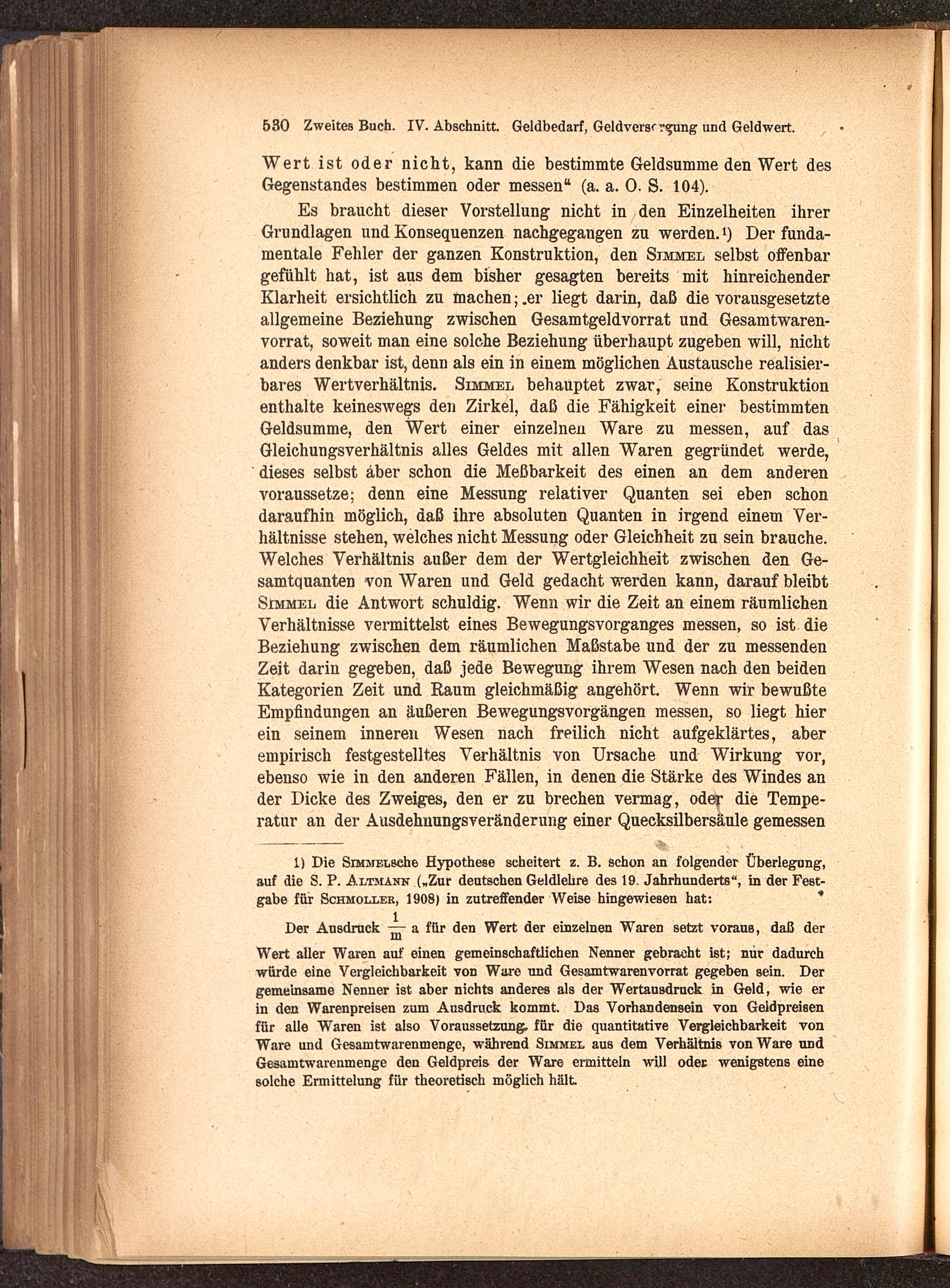 1) Die Simmel sehe Hypothese scheitert z. B. schon an folgender Überlegung,auf die S. P. Altmann („Zur deutschen Geldlehre des 19. Jahrhunderts", in der Fest-gabe für Schmoller, 1908) in zutreffender Weise hingewiesen hat: