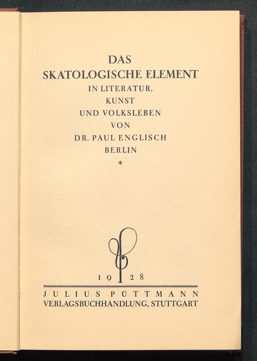 DASSKATOLOGISCHE ELEMENTIN LITERATUR,KUNSTUND VOLKSLEBENVONDR. PAUL ENGLISCHBERLINJULIUS PÜTTMANNVERLAGSBUCHHANDLUNG, STUTTGART *I 92 8
