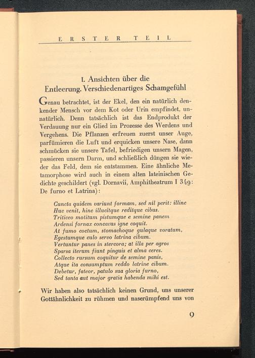 I. Ansichten über dieEntleerung. Verschiedenartiges Schamgefühl