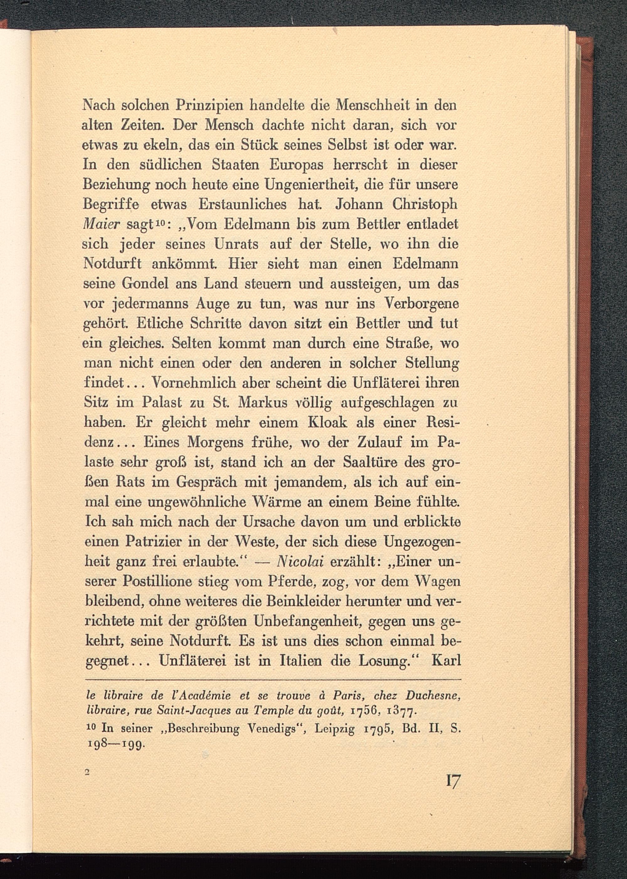 10 In seiner „Beschreibung Venedigs", Leipzig 1795, Bd. II, S.