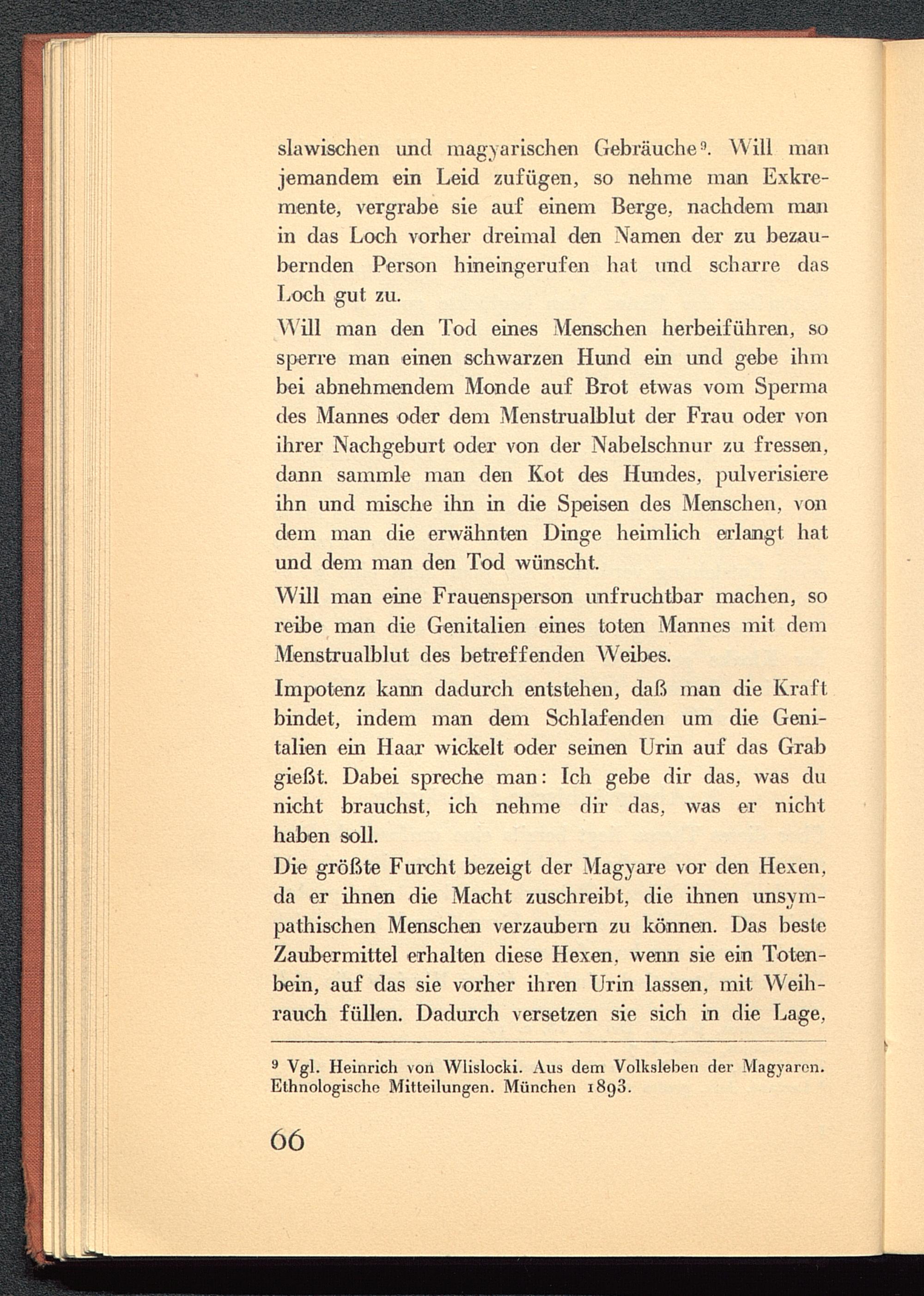slawischen und magyarischen Gebräuche". Will manjemandem ein Leid zufügen, so nehme man Exkre-mente, vergrabe sie auf einem Berge, nachdem manin das Loch vorher dreimal den Namen der zu bezau-bernden Person hineingerufen hat und scharre dasLoch gut zu.