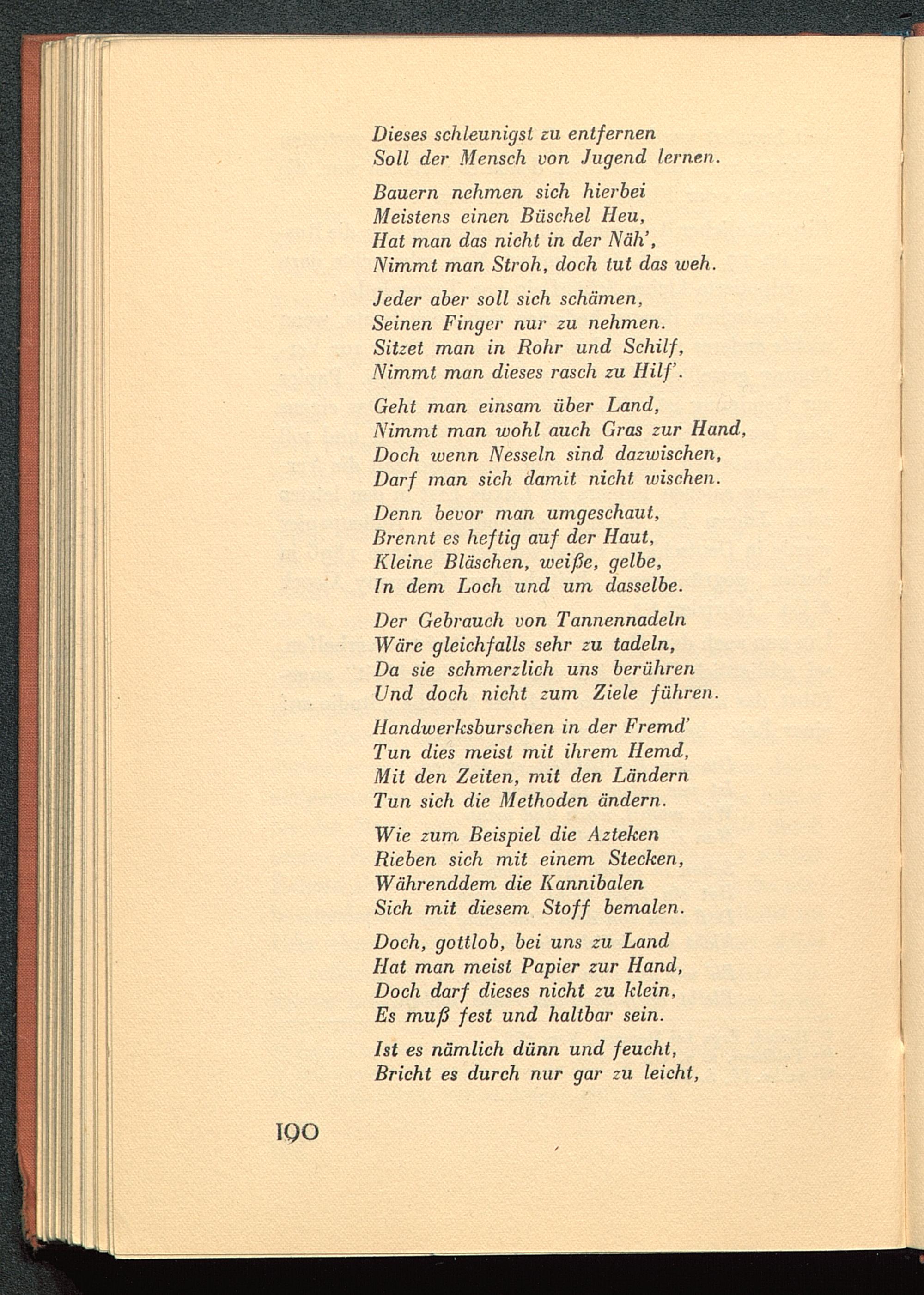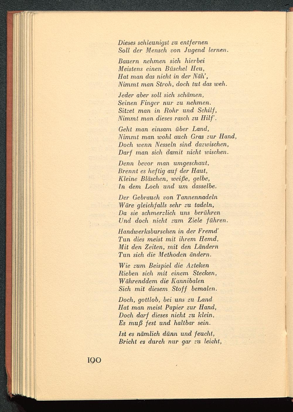 Geht man einsam über Land,Nimmt man wohl auch Gras zur Hand,Doch luenn Nesseln sind dazwischen,Darf man sich damit nicht ivischen.