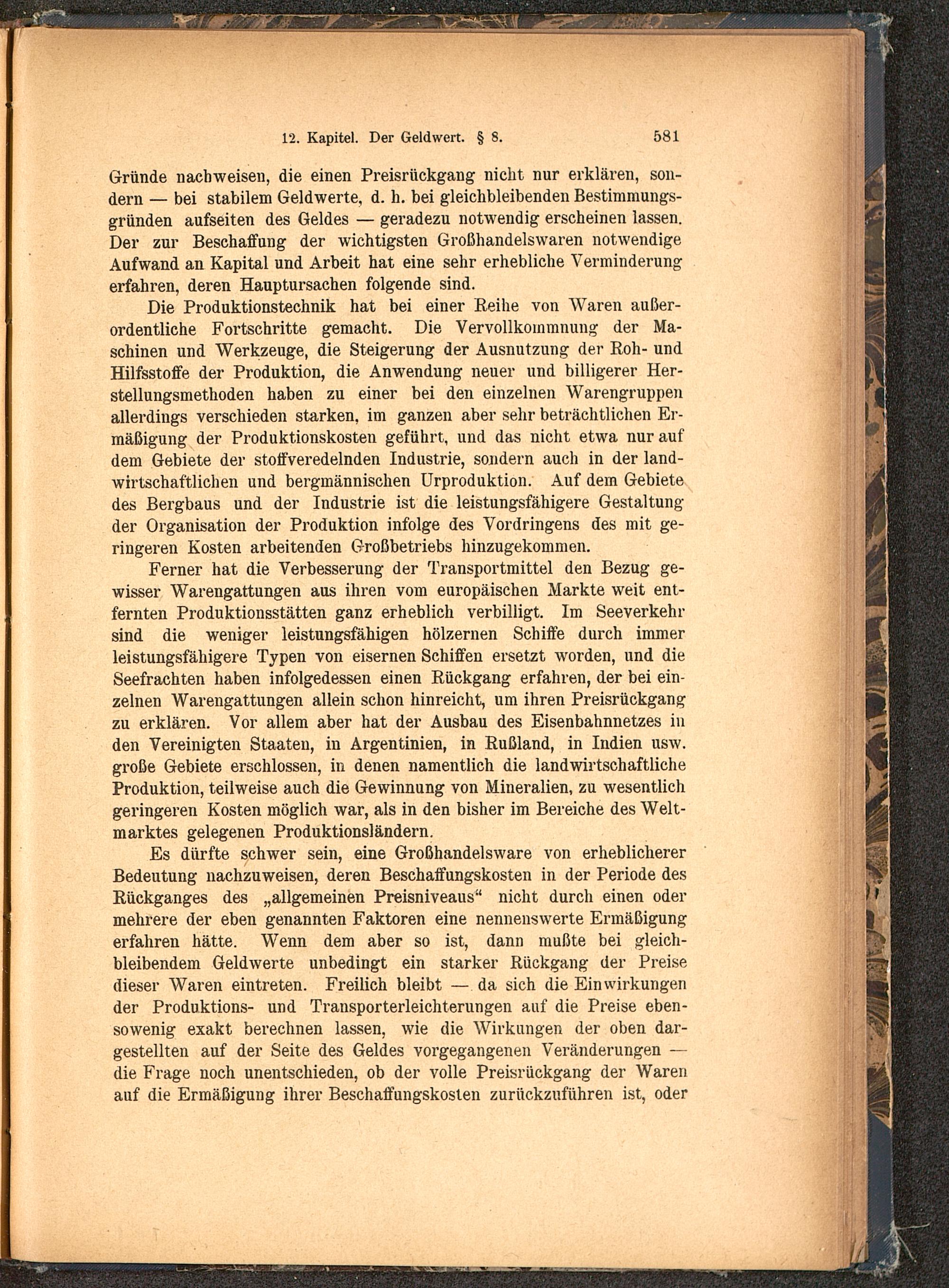 Gründe nachweisen, die einen Preisrückgang nicht nur erklären, son-dern — bei stabilem Geldwerte, d. h. bei gleichbleibenden Bestimmungs-gründen aufseiten des Geldes — geradezu notwendig erscheinen lassen.Der zur Beschaffung der wichtigsten Großhandelswaren notwendigeAufwand an Kapital und Arbeit hat eine sehr erhebliche Verminderungerfahren, deren Hauptursachen folgende sind.
