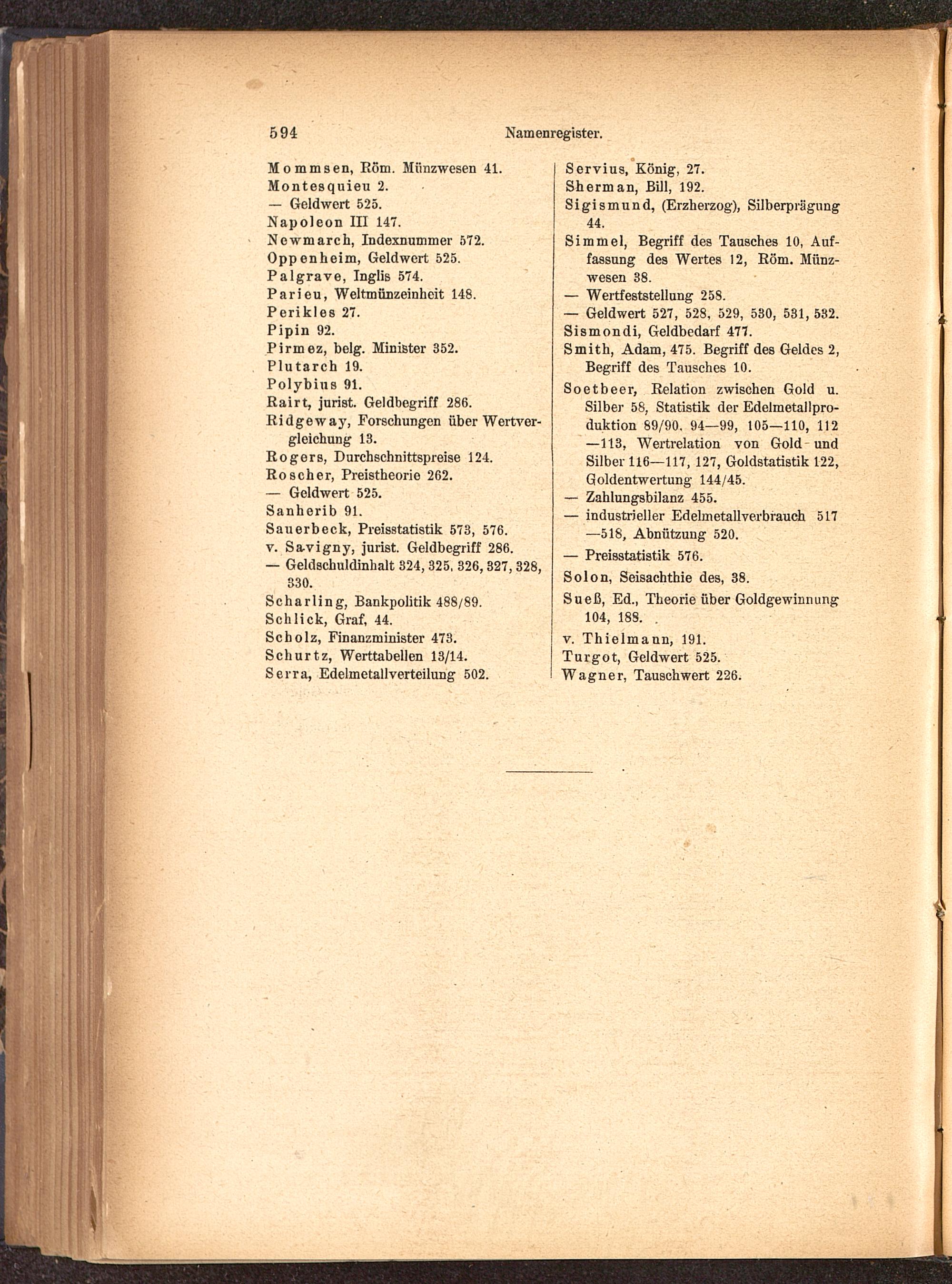 — Geldwert 525.Napoleon III 147.Newmarch, Indexnummer 572.Oppenheim, Geldwert 525.Palgrave, Inglis 574.Parieu, Weltmiinzeinheit 148.Perikles 27.