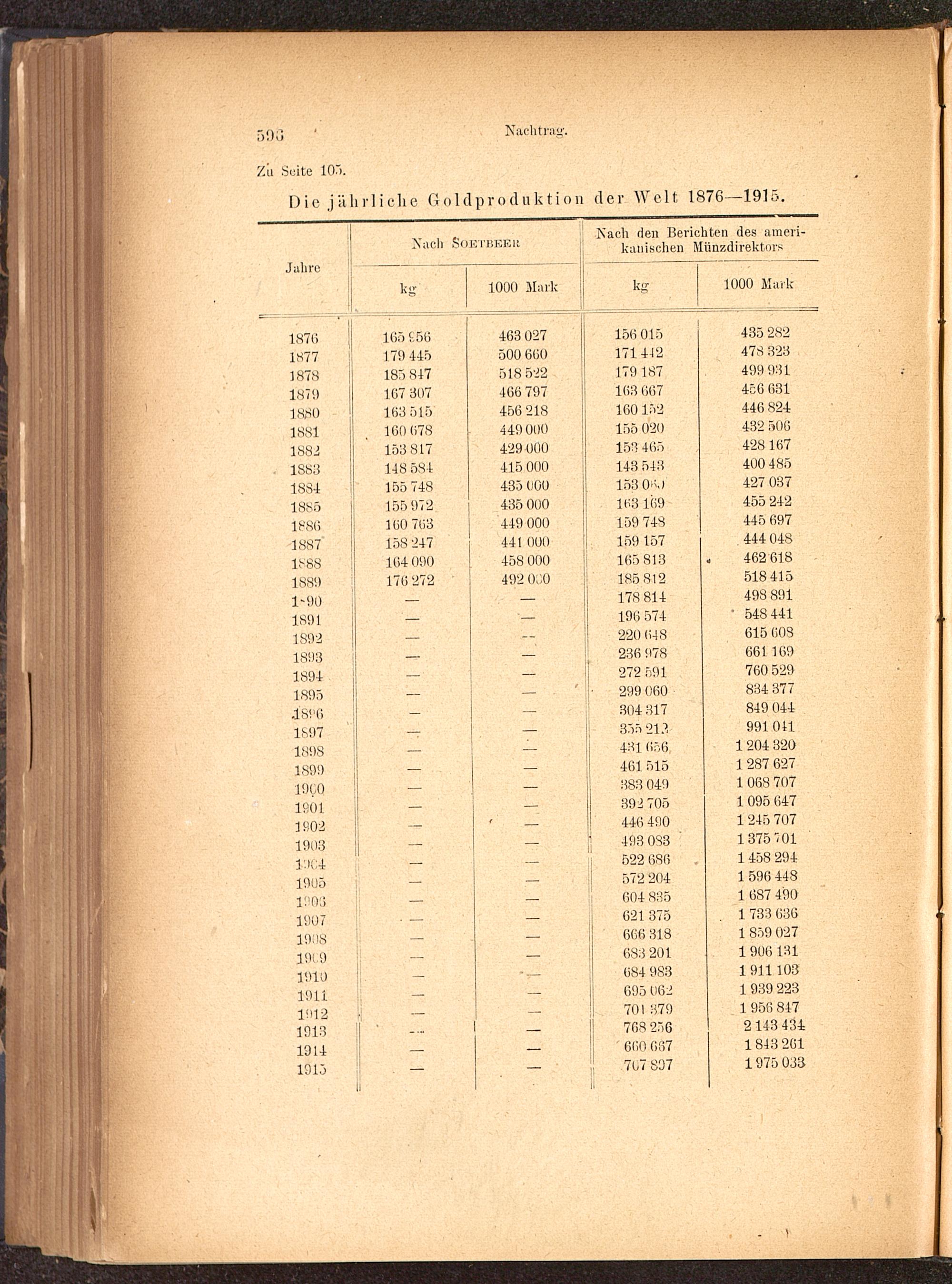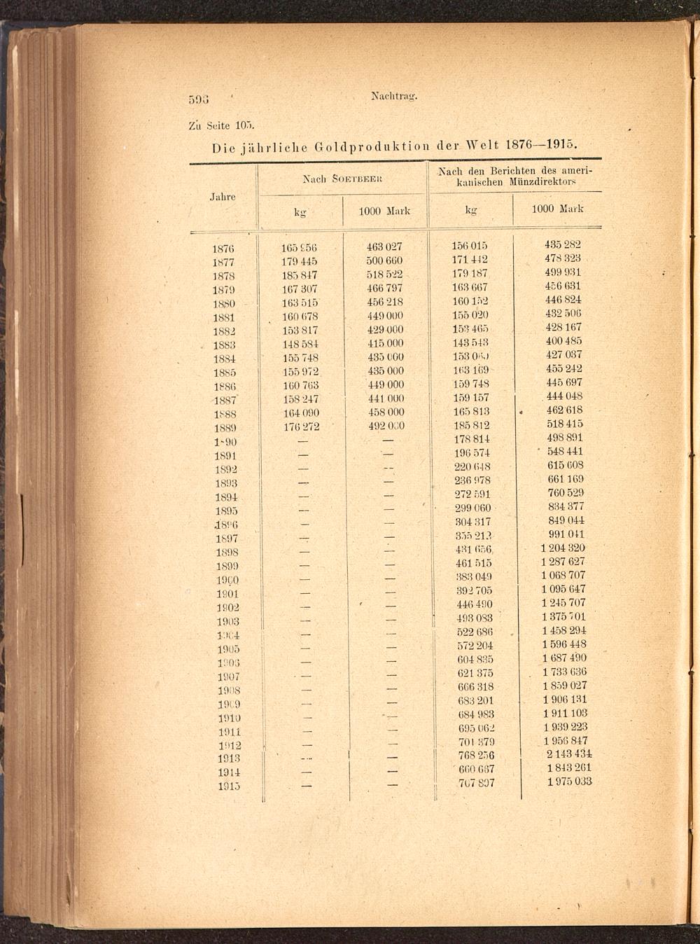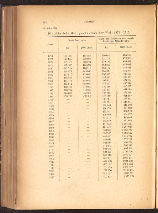 Die jährliche Goldproduktion der Welt 1876—1915.