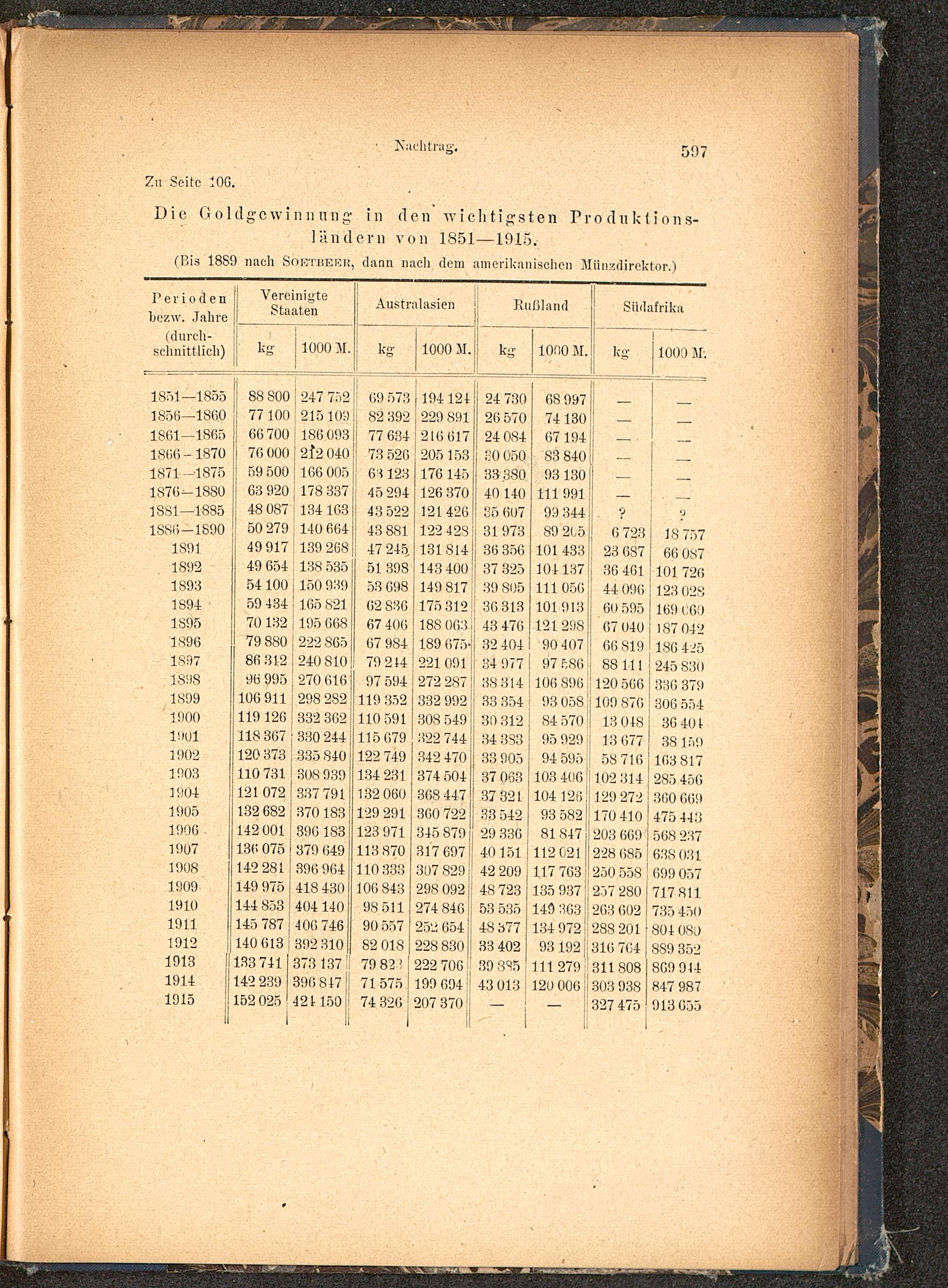 Die Goldgewinnung in den Avichtigsten Prodttklionsläridern von 1851—1915.
