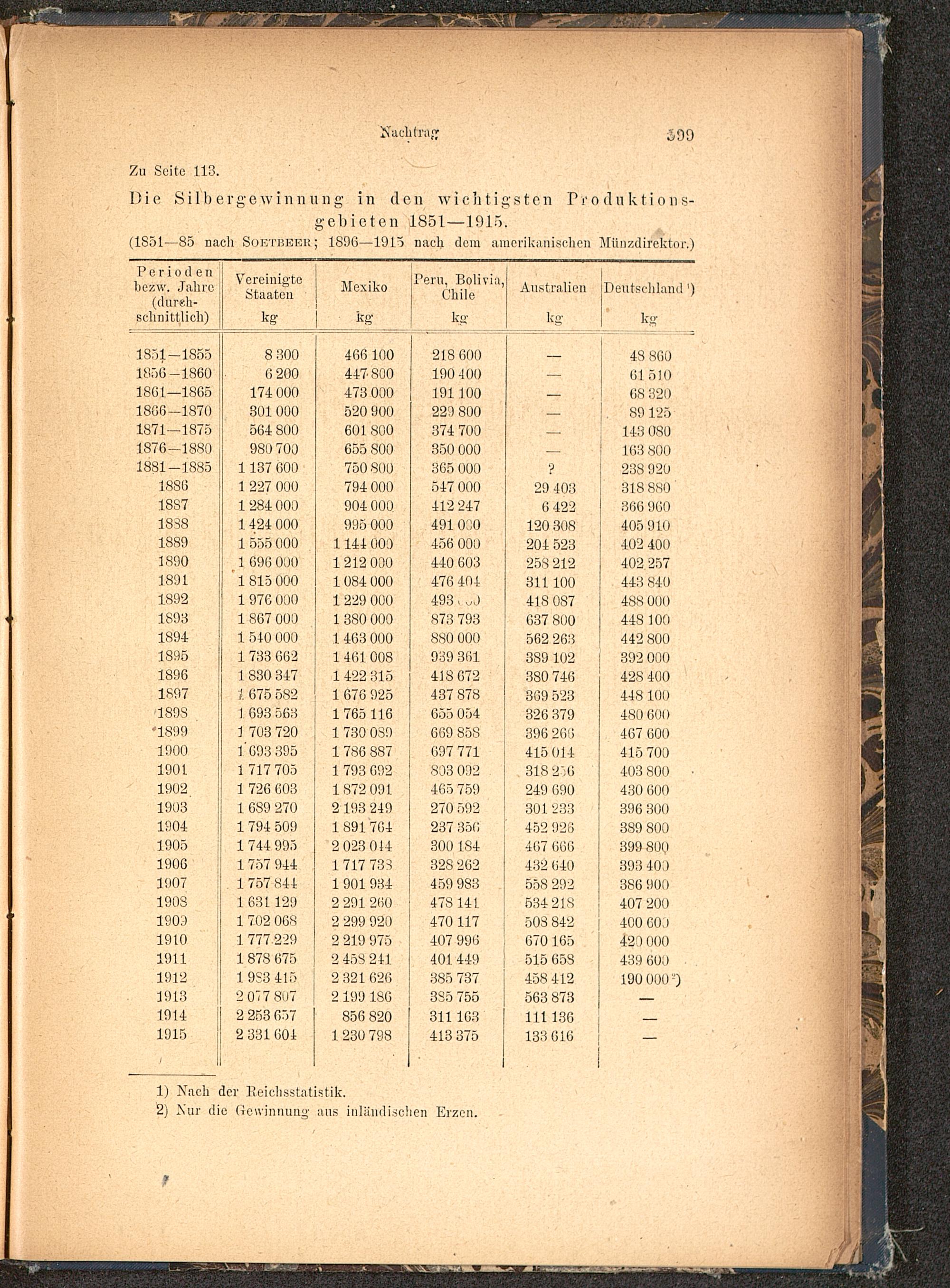 Die Sil bergew in innig in den wichtigsten Pi'oduktions-