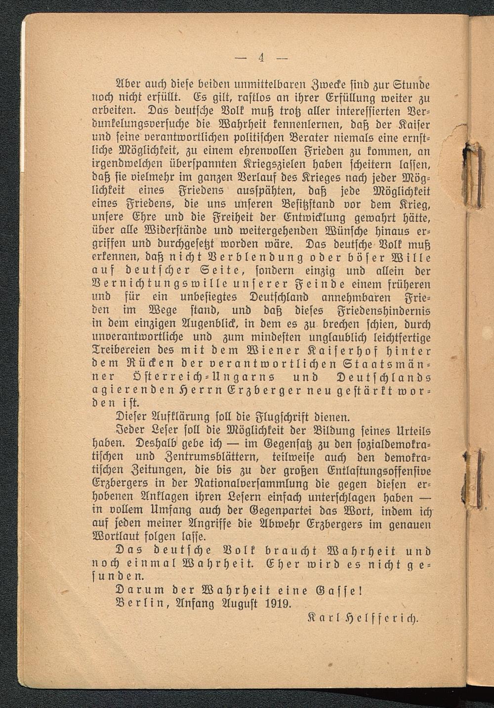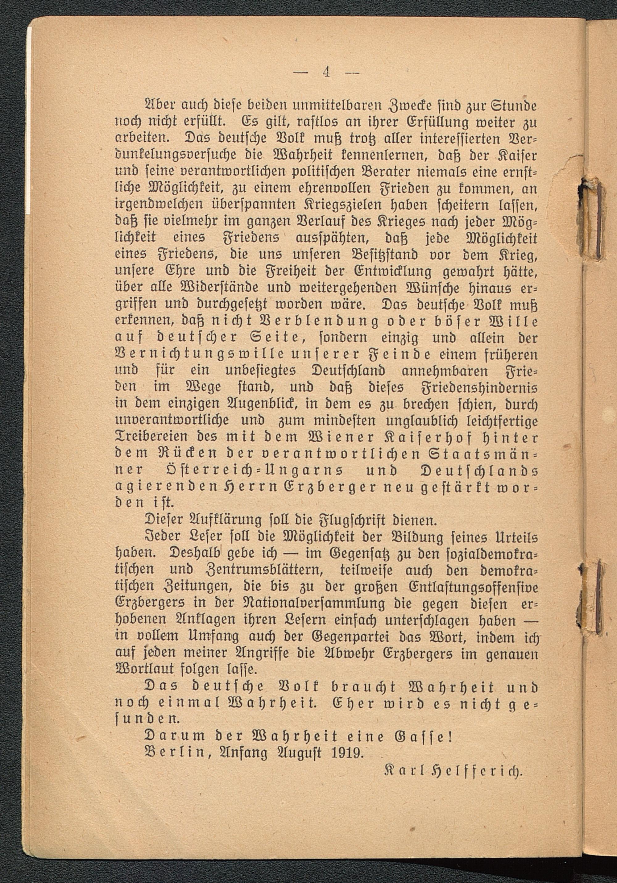 Darum der Wahrheit eine GasseiBerlin , Anfang August 1919.