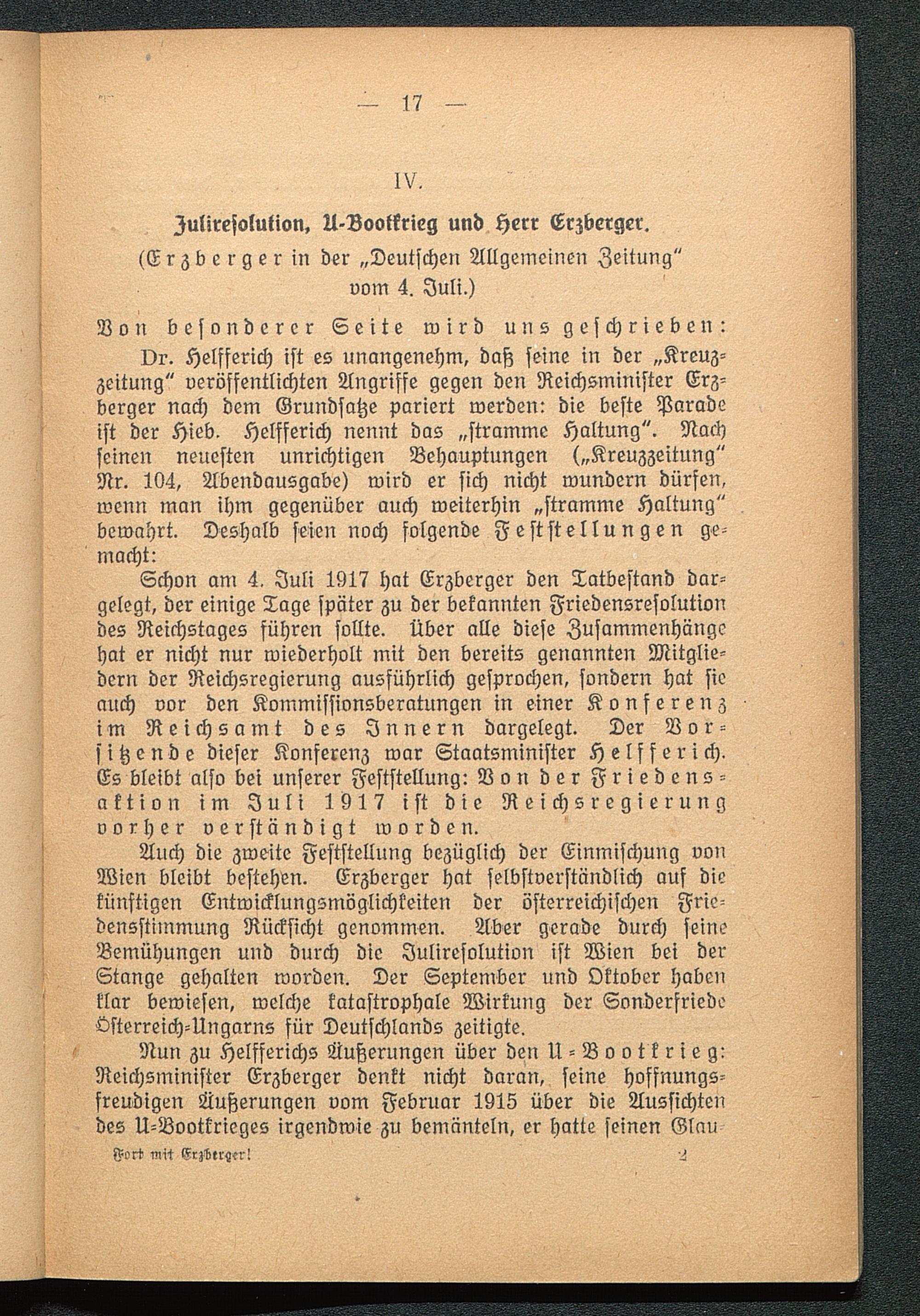 Miresolution. U-Bookkrieg und Herr Erzberger .