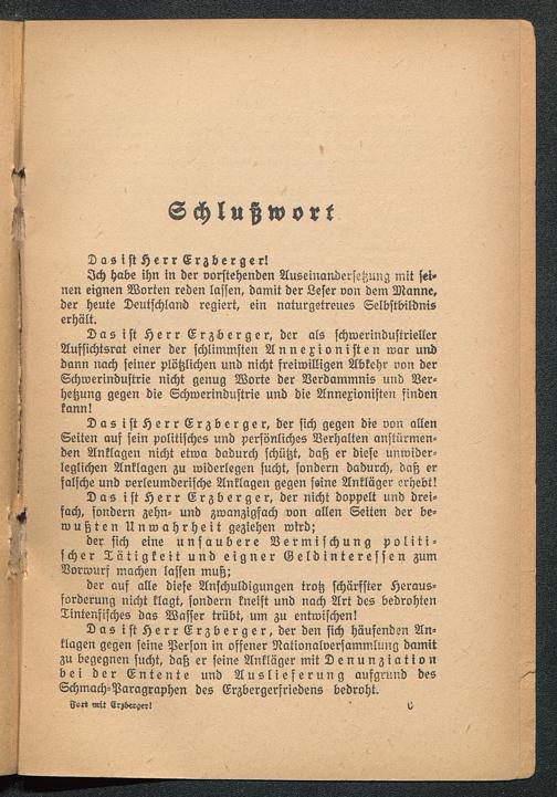 Das ist Herr Erzberger, der nicht doppelt und drei-fach, sondern zehn- und zwanzigfach von allen Seiten der be-wußten Unwahrheit geziehen wird;