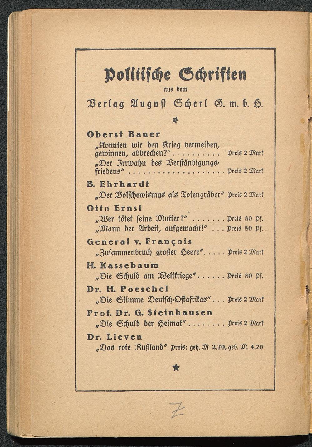 »Der Zrrwahn des Verständigungs-friedens" ....................Preis 2 Mark