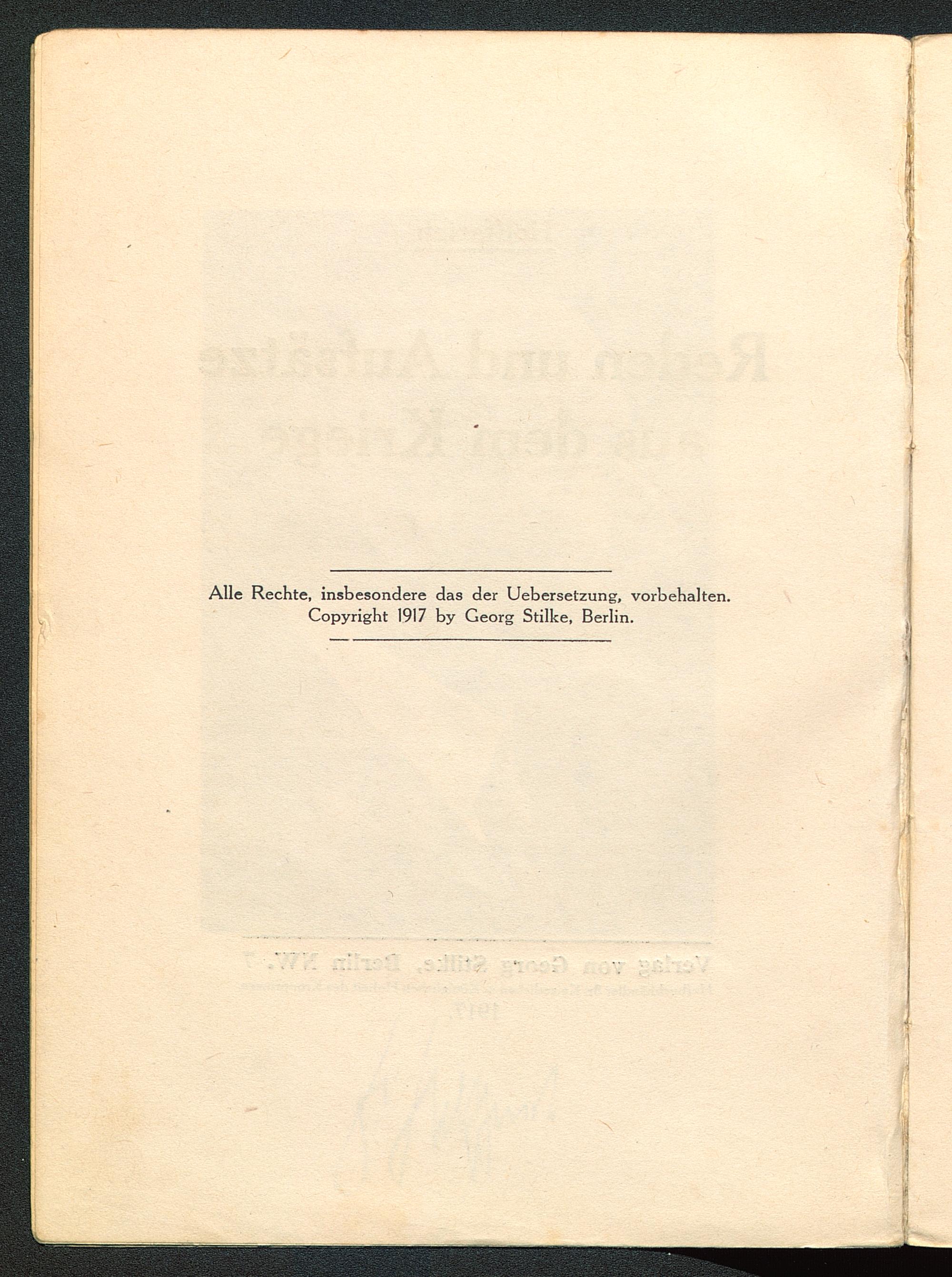 Alle Rechte, insbesondere das der Uebersetzung, vorbehalten.Copyright 1917 by Georg Stillte, Berlin .N.