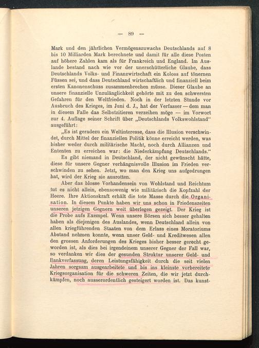 „Es ist geradezu ein Weltinteresse, dass die Illusion verschwin-det, durch Mittel der finanziellen Politik könne erreicht werden, wasbisher weder durch militärische Macht, noch durch Allianzen undEntenten zu erreichen war: die Niederkämpfung Deutschlands ."